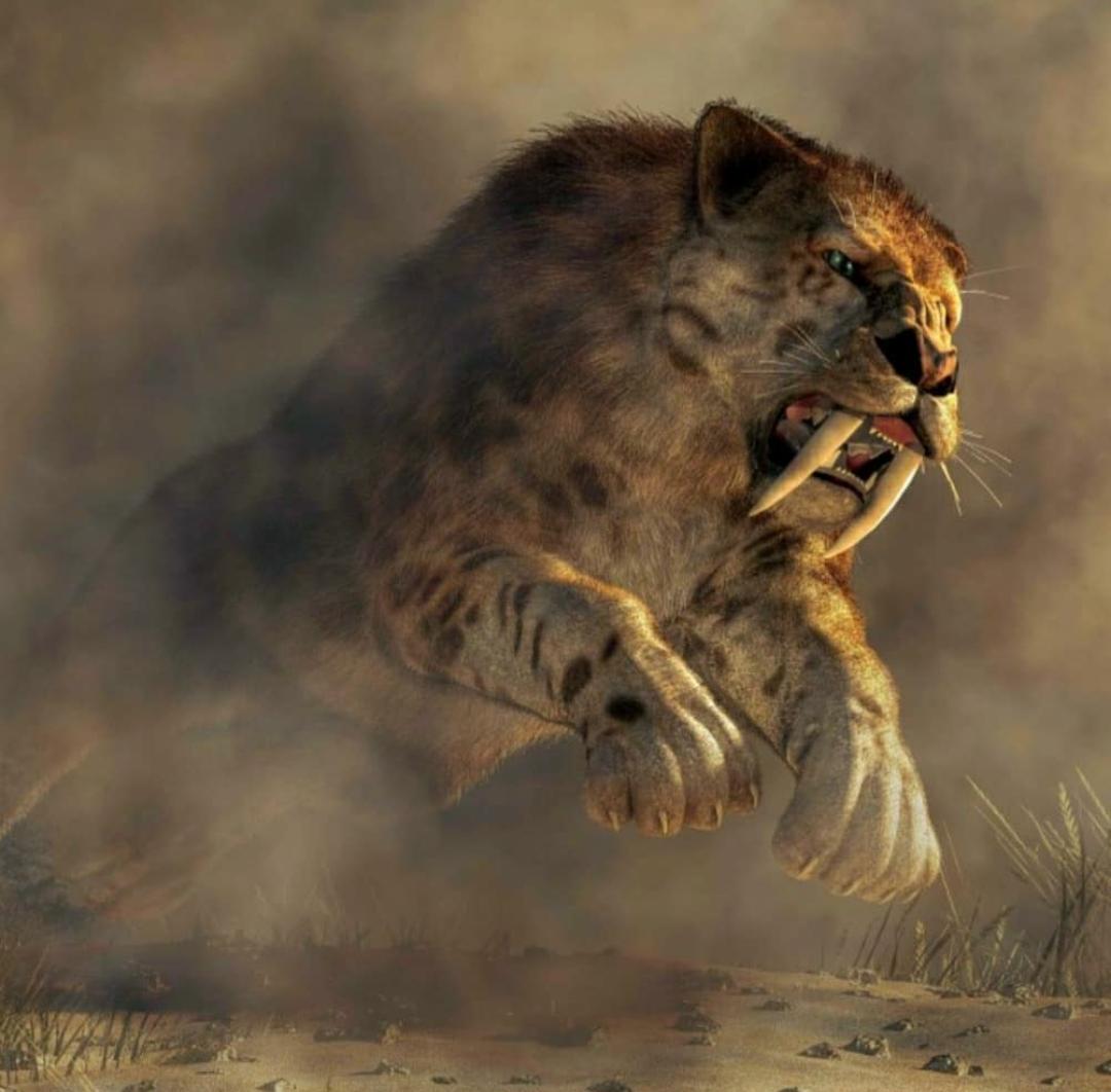 السميلودون ,نمر ضخم عملاق , اشتق اسمه من اللغة اليونانية والذي يعني : (النمر ذو الناب الطويل). كان يصل طول هذا الحيوان إلى المترين ويمكن أن يصل وزنه إلى 400 كيلوجرام. وعلى الرغم من انه اكبر قليلا من النمر السيبيري الحالي إلا انه كان ذو عضلات أقوى وجسمه اقرب للدب
