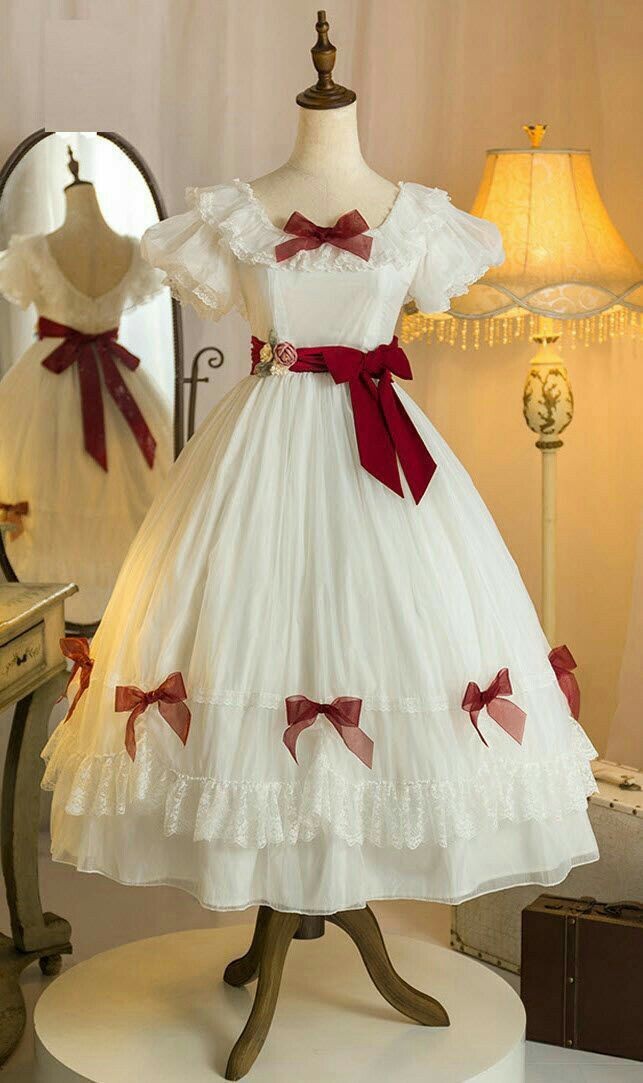 بفستان ابيض مزيين بشرائط حمراء تتماشى مع لون عيني ذات اللون الدموي انه ساحر حقا