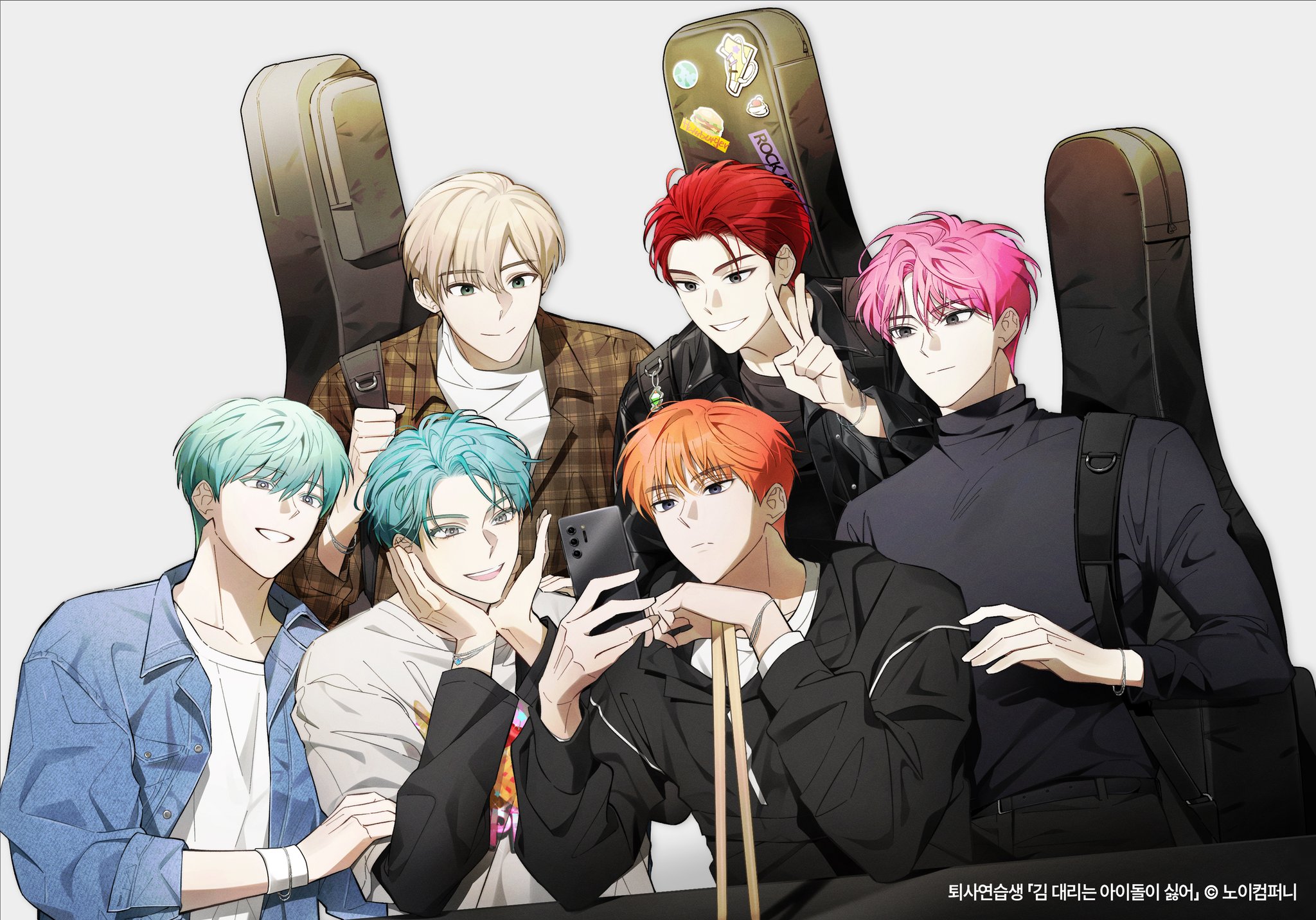 كيم إيول (برتقالي) - لي تشونج هيون ( ازرق سماوي) - بارك جو وو ( ازرق مخضر) - تشوي جيهو (بينك) - كانج كيون ( احمر) - جونج سونجبين (بيچ)