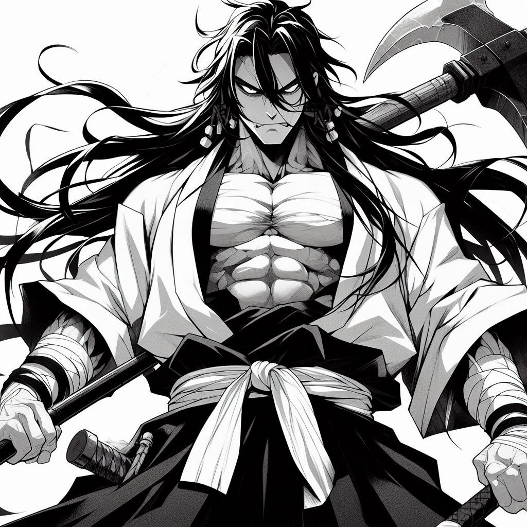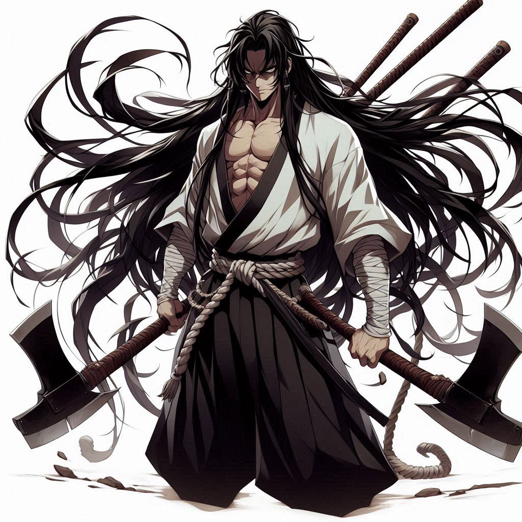 يبدأ الغبار الذي ناتج عن التراب في الانقشاع و يجد جو اماه شخص ضخم الجسم طوله حوالي 195 سم يرتدي زيا عبارة عن قميص أبيض و سروالي اسود و مربوط في خصره بحبل خشن و بطيحمل إثنين من الفؤوس في كلتا يديه بوجه و ملامح جادة و قاسية و يقول له بصوت قوي و خشن و الهالة تتدفق من جسده و هي تسود بالوحشية