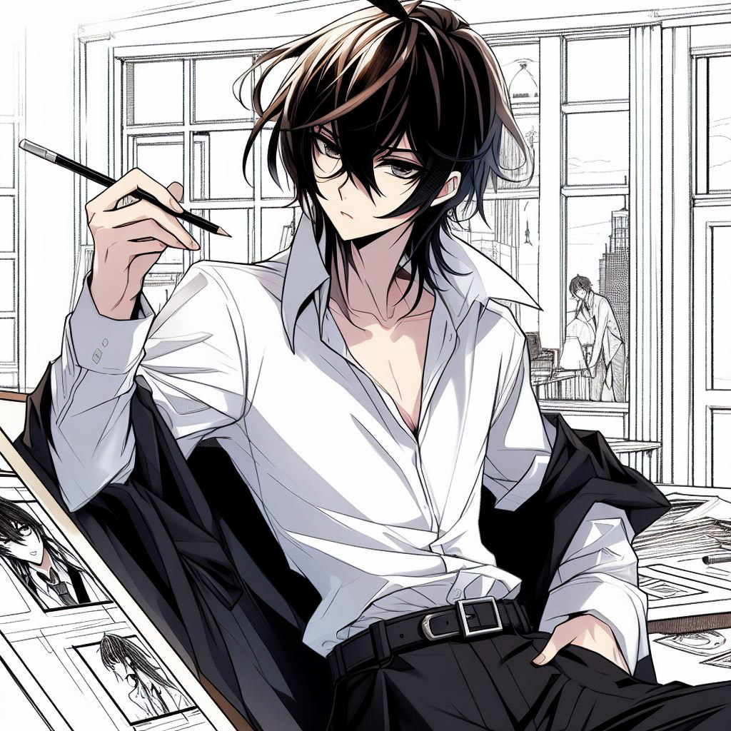 يخبره اسمي هو اياتو (شاب في 17 يرتدي ملابس عبارة عن قميص ابيض و سروال اسود طويل و عنده شعر اسود قصير )