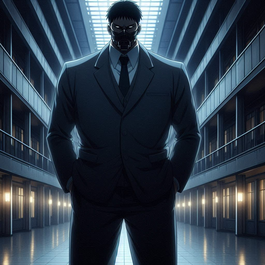 و بعدها و قبل أن يدخل يتأمل فيه من الخارج و هو يقول في نفسه كنت أتي كثيرا إلى هنا و انا صغير لزيارة اخي و ابي المكان لم يتغير ابدا شكليا لكن الطابع الموجود فيه اختلاف كليا لم يعد نفس المكان بعد الان و عند نهاية الممر يظهر رجل ضخم الجسم بشكل مرعب و ملامح قاسية و يرتدي قناع غريب الشكل على وجهه و ملابسه رسمية أنه أحد الزعماء الثلاثة التابعين لمورغان و اسمه هو غوردون