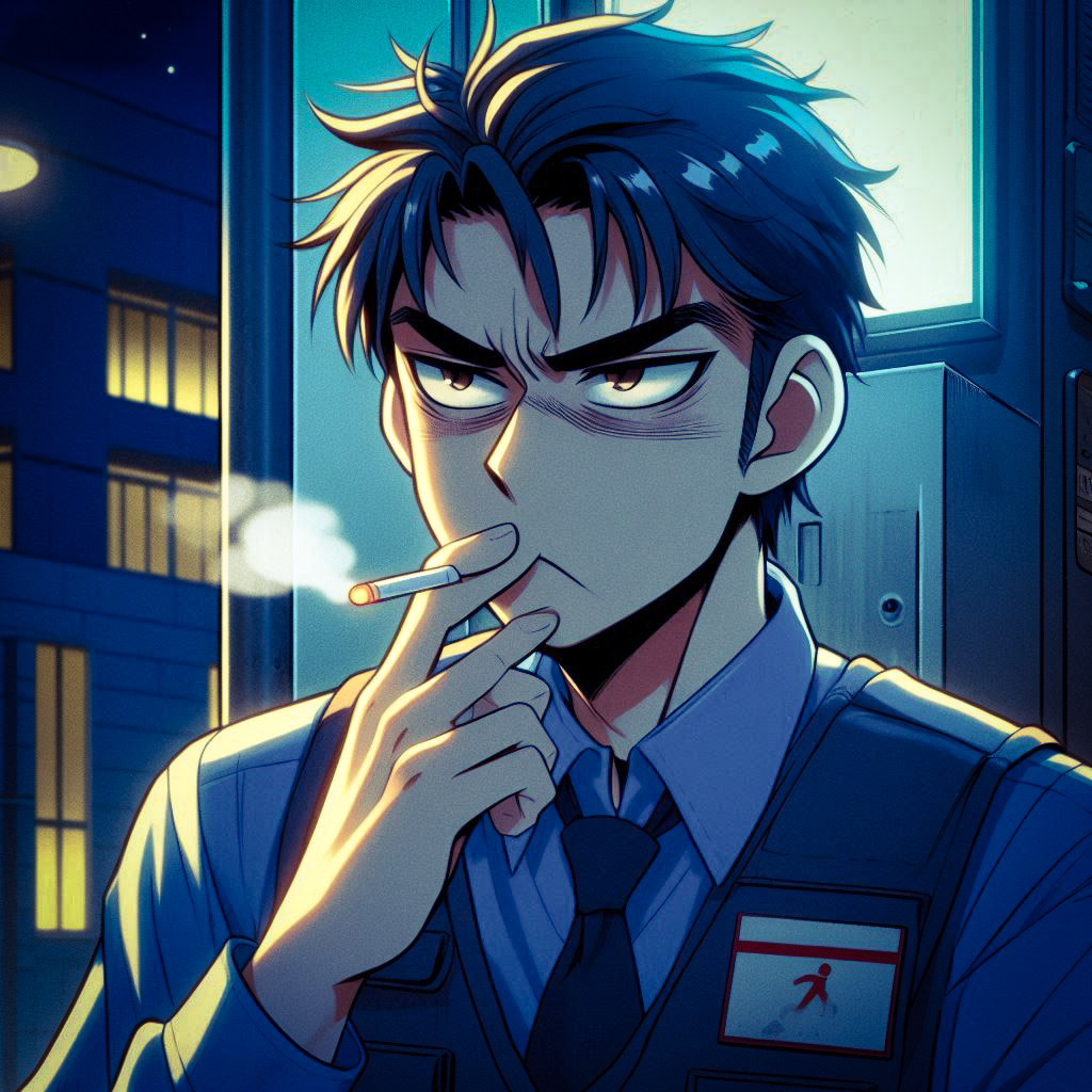 ها من يهم انا مجرد حارس عادي مهمتي هي منع دخول اي احد لا . علاقة لي بما يحدث سابقى هنا و استمر في عملي فقط يحاول الجلوس لكنه يقول مالفائدة انا متوتر جدا .. أعرف سأدخن فقط