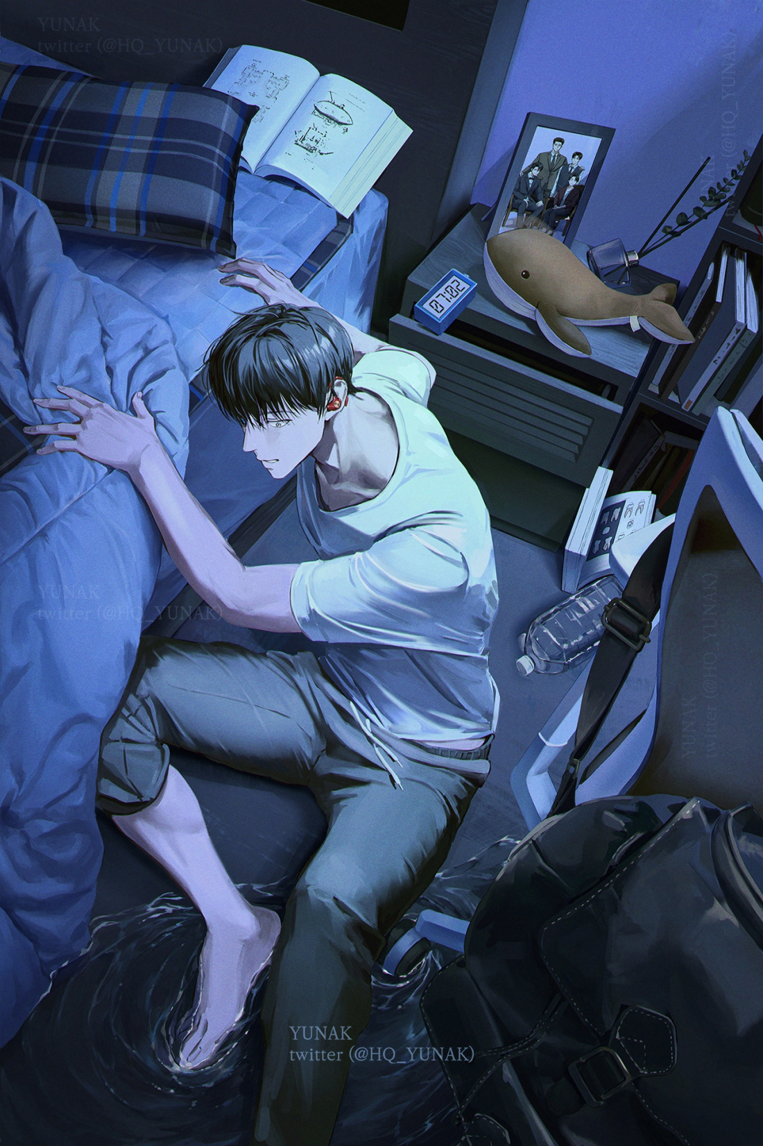 بينما كنت أرتدي حذائي، ألقيت نظرة أخيرة على الغرفة، واستقرت عيناي على الحوت البرتقالي المحشو الوحيد. كان لونه البرتقالي الزاهي يبرز بشكل لافت وسط اللون الرمادي الكئيب للغرفة زميلي من ديب بلو، كان هو الأكثر معاناة.