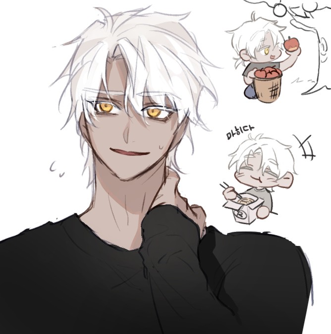 لم أتوقع منه أن يأتي بنفسه إلى هنا ليسلّمه لي. وبما أنني كنت في إجازة اليوم، فلا بد أنه كان في إجازة أيضًا. وبالفعل، لم يكن يرتدي زي الغرير الأسود، بل قميصًا أرجوانيًا داكنًا.