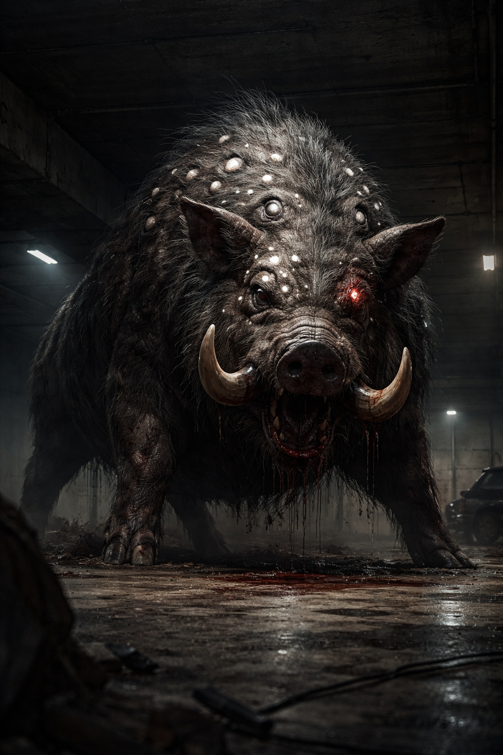 خنزير. لكنه لم يكن بحجم أي خنزير تخيلته من قبل. كان بحجم سيارة دفع رباعي متوسطة الحجم تقريبًا.