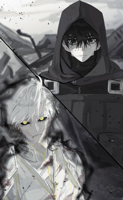 وعلى الجانب الآخر وقف ييهيون، لا يحمل شيئًا. كان يرتدي غطاء الرأس الأسود لزيّه القتالي منخفضًا، وبدا وجهه، نصفه مخفي في الظل، شاحبًا ومرهقًا.