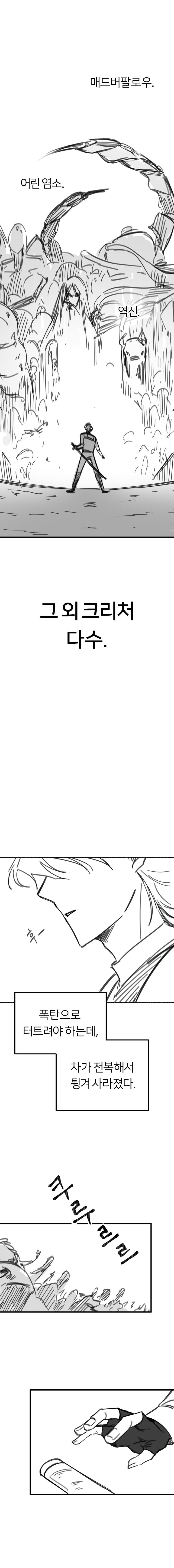 بدا أن العنق لم يُقطع. هزّ عواء المخلوق الغاضب وانفجارٌ كهربائي الهواء. ضربت موجة الصدمة الناتجة عن الانفجار ظهري بقوة.