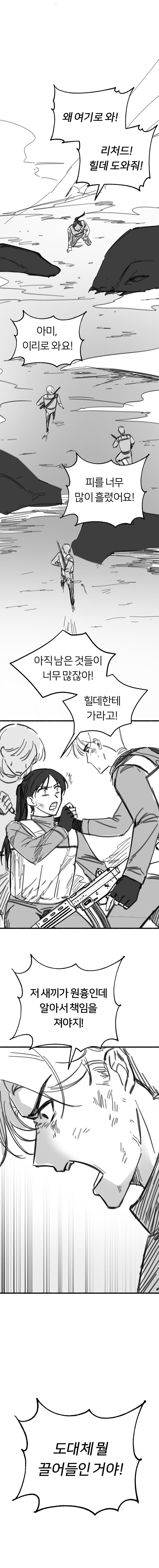 لكنني لم أستطع الحركة. حاولت، لكن لم تتحرك يدي. لم أملك إلا أن أشاهد آمي وهي تركل الحطام بمهارة لتشق طريقها للخروج. انزلقت من خلاله، ثم مدت يدها إلى الداخل، وأمسكت بي وسحبتني إلى الخارج.