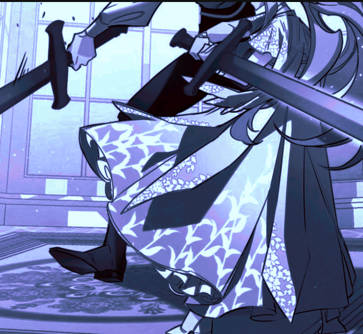 كلامه أثر علي أصبحت أراه كأنه هي بالفعل...تقدمت راكضة و قمت بإستهدافه بالسيف و أوقعته ارضا و وجهت السيف على رقبته ، بقي الجميع مصدوما.