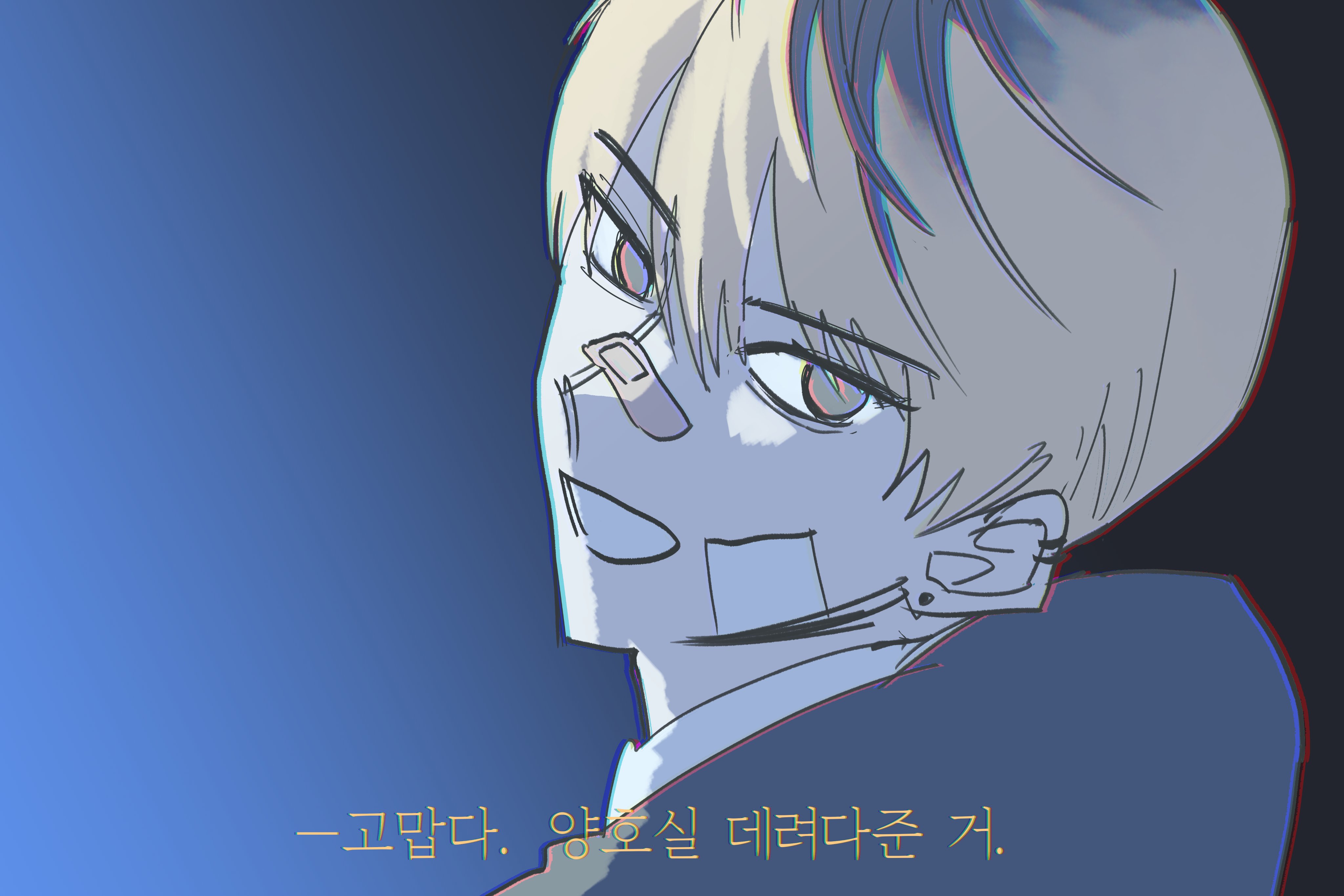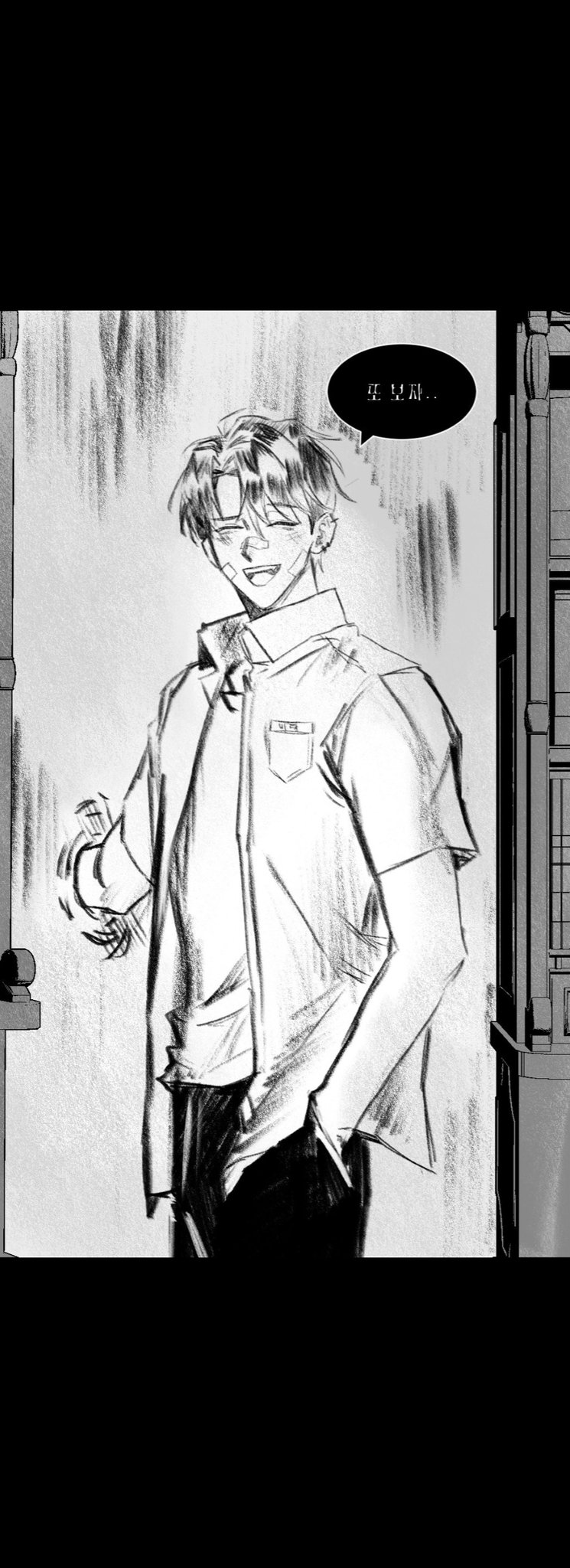 لي غيول، الذي كان يضع يده في مكان غير مرئي في الجدار، ابتسم لي وهو يرتدي زيه المدرسي.