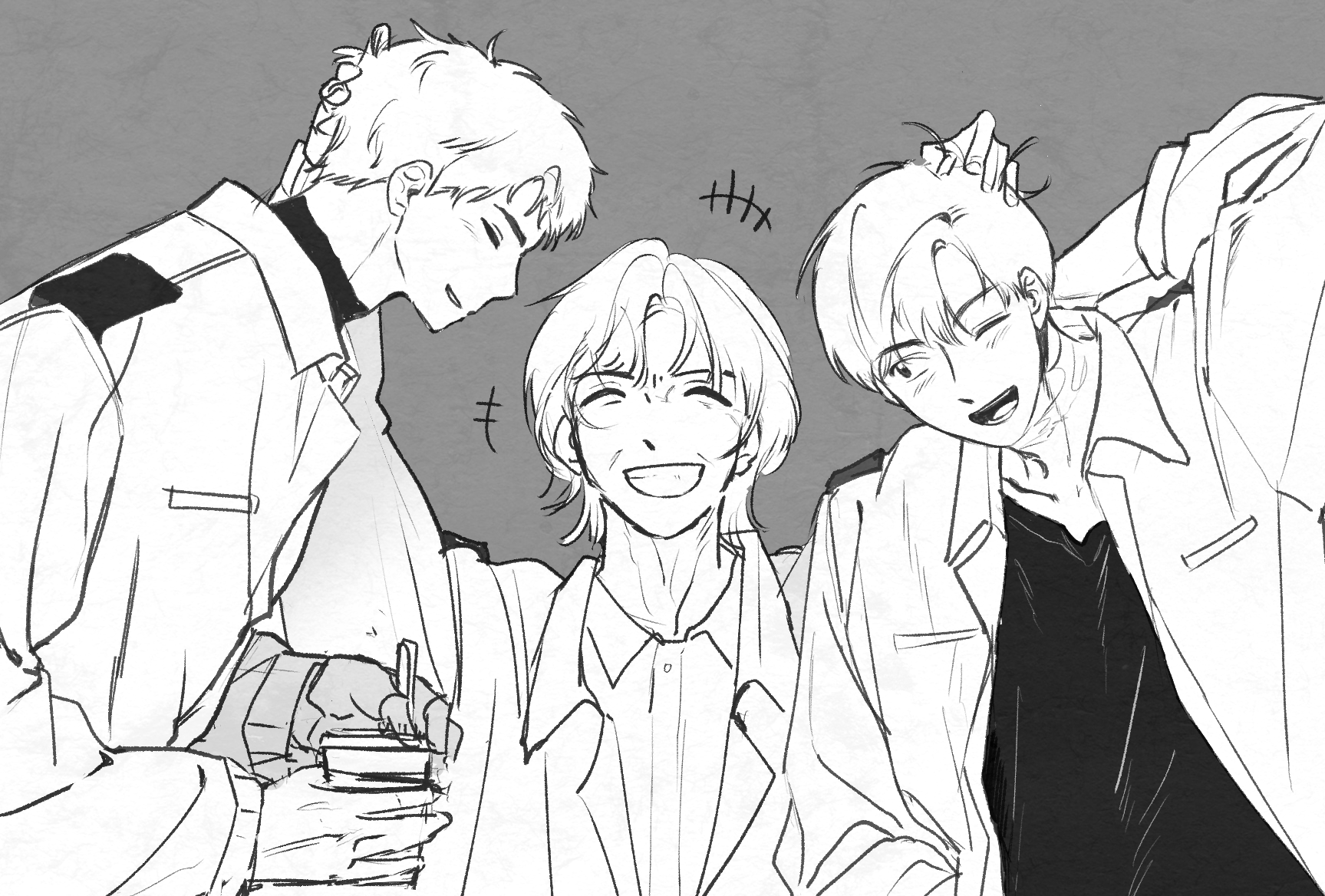 ابتسم هُو يو-وون ابتسامة واسعة كأن فمه سيتمزق، وهو يصفق ويصرخ.