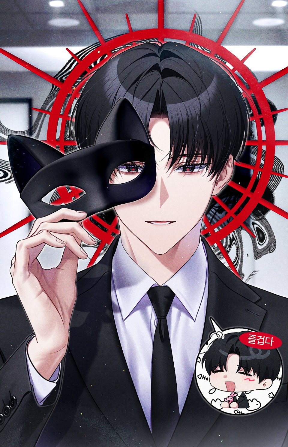 ~رجل يرتدي قناع قط أسود. لقد كان كيم سول-يوم.