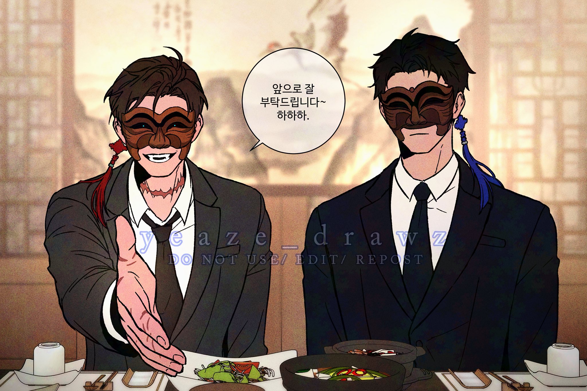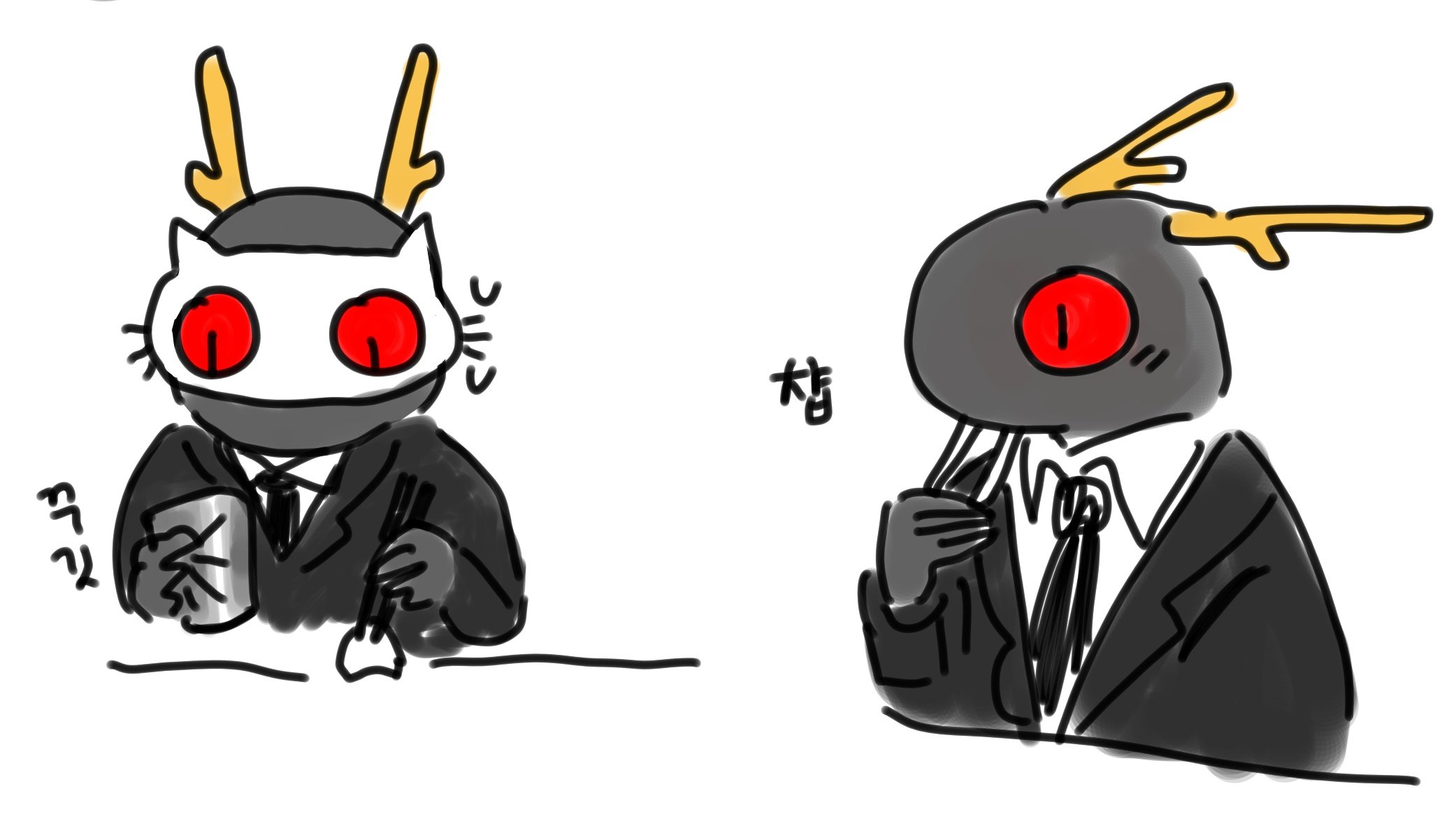 ~كانوا يرتدون بدلات عمل كما هو الحال في فريق الاستكشاف الميداني، لكن أقنعتهم كانت مختلفة. قناع 'هاهوي'؟