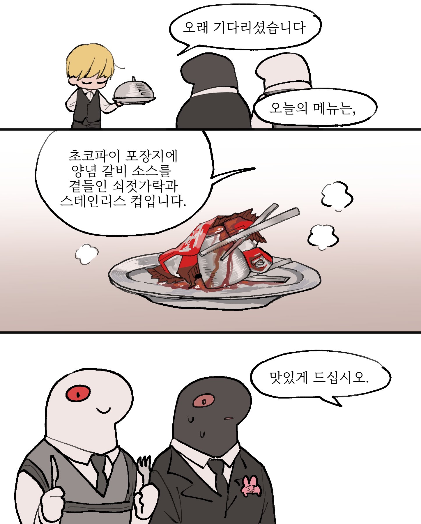 قائمة اليوم هي، غلاف بسكويت الشوكولاتة مع صلصة الضلع المتبلة وعيدان تناول الطعام وكوب من الفولاذ المقاوم للصدأ.🤣