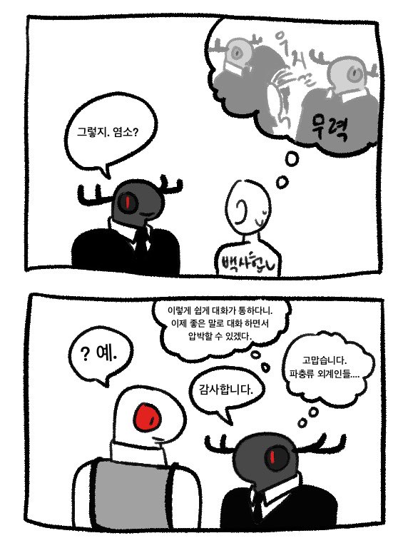 عندما تجمَّعَ الآخرون حول الجثة، ذهب بايك سا-هيون بمفرده إلى جانب الأريكة في مكتب موظفي المحطة. ثم…