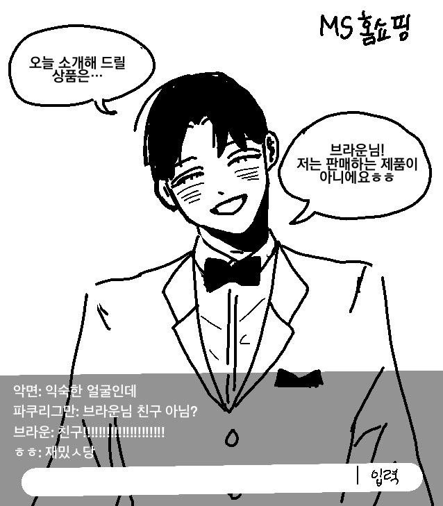 -حسناً، فلنذهب للعمل حسب العقد. مشارك في تحدي النجاة، مقدم العروض الجديد لـ 'التسوق الوهمي المنزلي'. صديق براون.