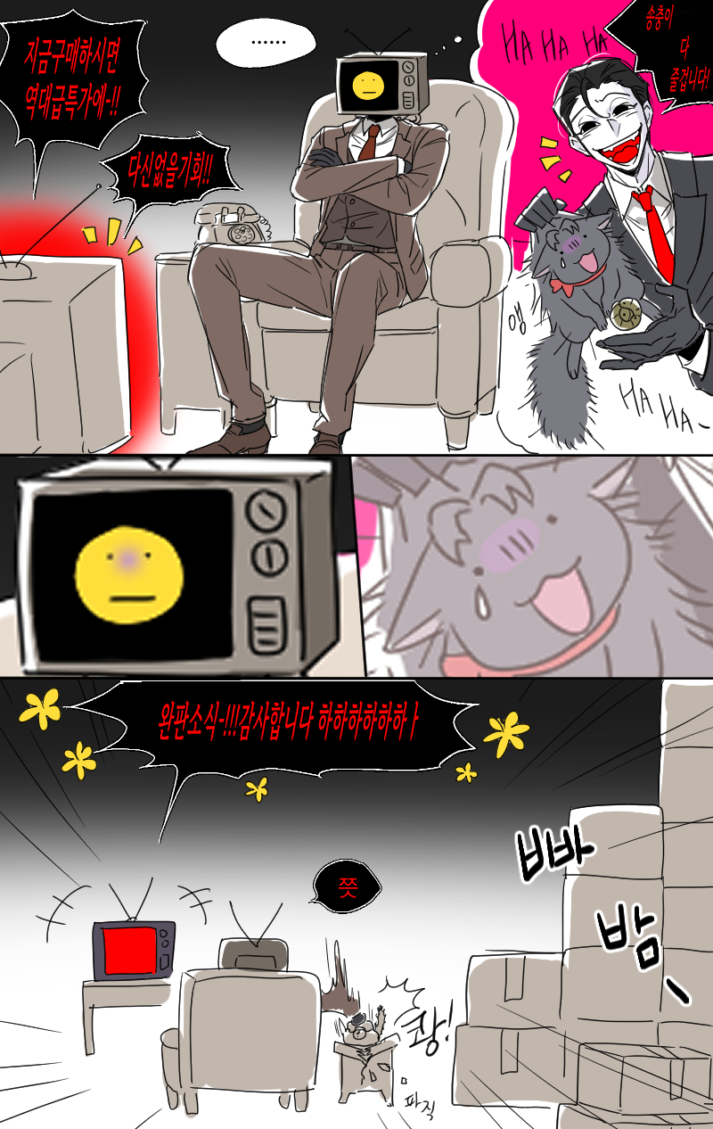 شعرتُ وكأن زوايا فمي ارتفعت لأبتسم. ظهرت ابتسامة واضحة بشكل غير طبيعي على وجهي. كما يليق بعارض في 'التسوق الوهمي المنزلي'.