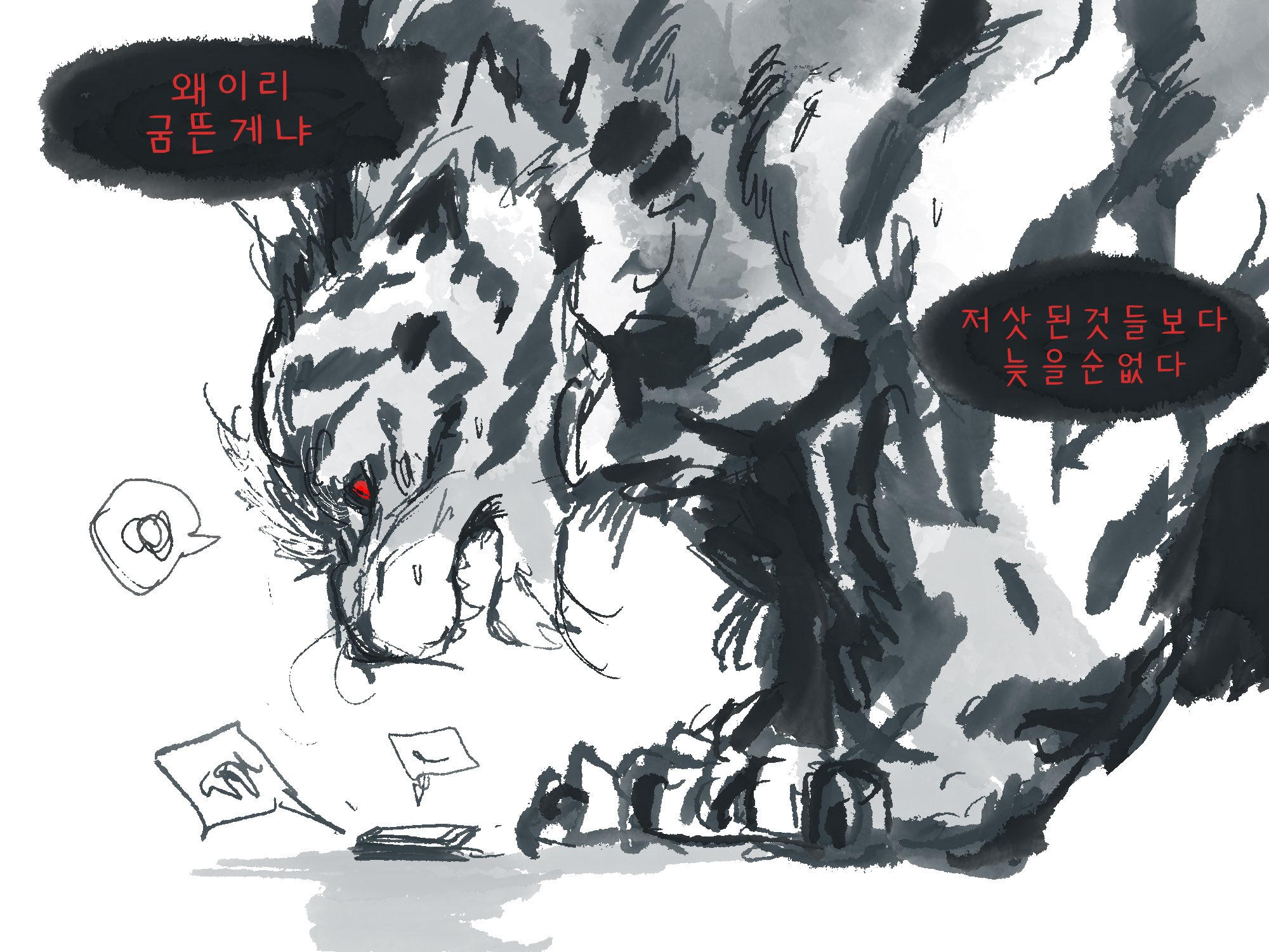 بفتت، ضحكة خفيفة خرجت من فم غو يونغ-أون دون قصد ثم تلاشت.