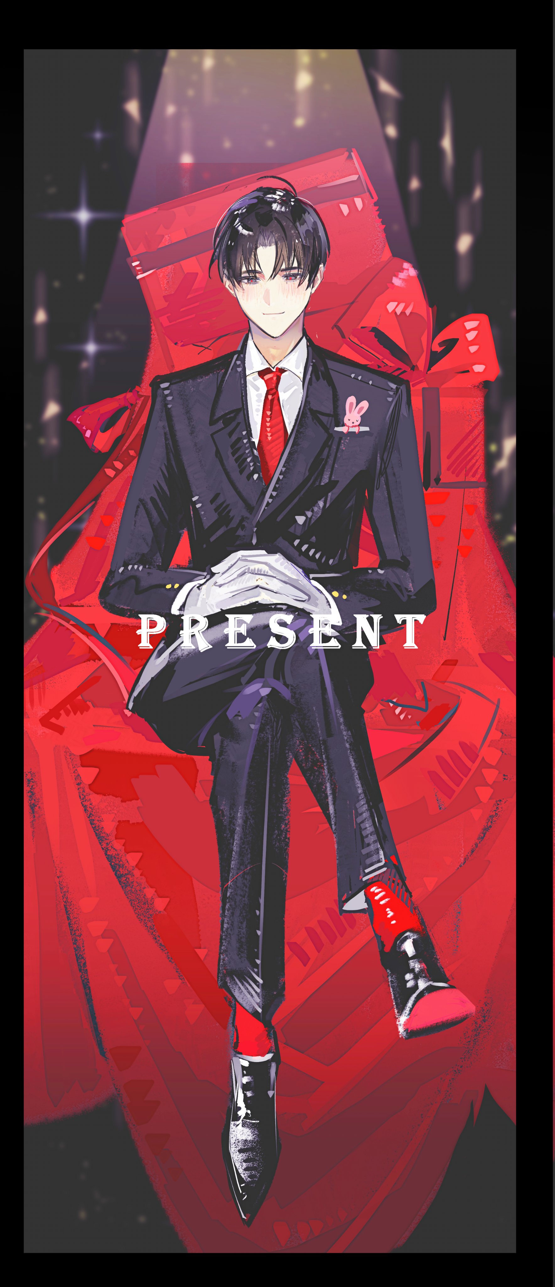 كانت الصناديق كبيرة ومعبأة جيدًا، وبها لون غير شفاف لا يمكن رؤية ما بداخله، وعلى السطح الخارجي كُتبت كلمة 'Present!' بالإنجليزية بخط عتيق. (Present=هدية)