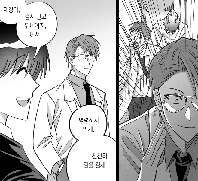 لكن كواك جي-كانغ بدلاً من أن يستمع إلى كلماته، أضاءت عيناه بمجرد رؤيتي، ولحق بي.