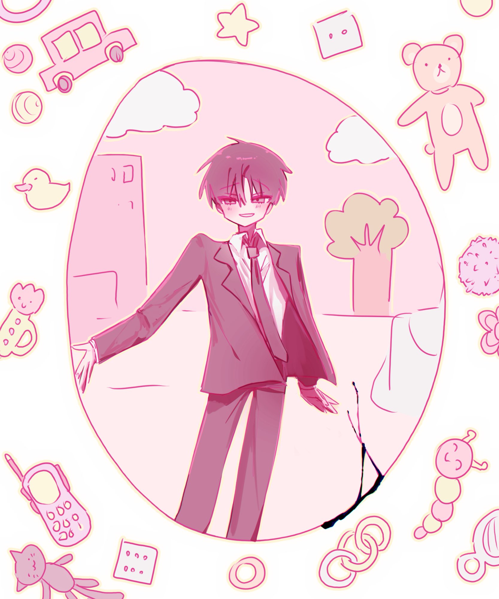 ثم ابتسم مع انحناء عينيه بلطف.