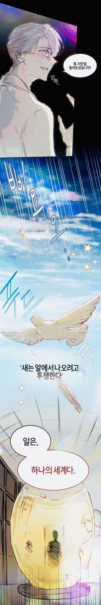 ~كلامي مهم لأن فهم الأسرار بين السطور قد يكون الجواب وعذرا إذا طولت الكلام، نبدأ بعبارة "البيضة هي العالم" هي فعلا عبارة من رواية كلاسيكية اسمها demian للأديب الألماني هيرمان، تكملة العبارة هي "الطائر يكافح للخروج من البيضة. البيضة هي العالم. والذي يريد أن يولد عليه أولًا أن يدمر عالمًا" إذا اعتمد الكاتب على هذه العبارة وإذا تأملنا اسم الآلة (حاضنة الأحلام) والبيضة التي تمت حضانتها فيها، هذا يعني أن ما تم تكوينه داخل البيضة هو حلم أو أحلام، إذا كانت البيضة هي العالم فربما كان كيم سول-يوم يعيش في عالمه الخاص بدون قصص رعب داخل البيضة كما حلم الباحثون حول انشاء عالم بلا قصص رعب، لذا ربما عندما تمنى العودة للمكان الذي كان فيه قبل الانضمام للشركة عاد لحاضنة الأحلام التي عاش فيها فهي ربما كانت منزله حقًا أو بالأحرى ما كان بداخل حاضنة الأحلام أي البيضة، ثم نأتي لهمسات سكان قصص الرعب وقولهم "منزلك سيحترق أيضًا وسيختفي." أليس هذا تلميحًا؟ بما أن معهد أبحاث المرح أيضا احترق والبيضة أو العالم كان موجودا فيه ألا يمكن اعتبار أن منزل كيم سول-يوم قد احترق واختفى؟ هناك العديد من الثغرات في كلامي فإذا كان البطل كائن تكون في بيضة بعالم آمن فلماذا يعرف عن عالم قصص الرعب والسجلات، هذا يعني أننا لا نعرف الحقيقة كاملة حول ويكي سجلات استكشاف الظلام والكتَّاب وعن إيروم-نيم فهل يعني أن ذكرياته مصنعة ومزيفة؟ أو أنه عاشها فعلا؟ أو أنها ذكريات حقيقية لكنها ليست ملكًا له، أو أن هناك من وضع نبوءة نهاية العالم كقصص عمدًا لمنع نهاية العالم في العالم الواقعي، إذا فكرنا هكذا فهذا يعني أن العالم الأصلي هو العالم مع وجود قصص الرعب والعالم الفرعي الذي يحلمون بانشائه هو العالم بدونها، ربما كيم سول-يوم هو هذا العالم. كنت شفت تعليق هنا هكذا أظن: سول-يوم هو العالم والعالم هو سول-يوم. لكن تبقى لدينا ثغرة لفهم الوضع كاملاً... فسول-يوم أو دعونا لا نحدد لأننا غير متأكدين، إيروم-نيم ليس شيئا تم صنعه فقط بل تم استدعائه حسب محتويات البحث في الفصل 208، وكيف يمكن لاستدعائه أن يحقق حلم الباحثين؟ ثم تذكرت أن هناك بيضة أخرى تحرك شيء بداخلها في الفصل 148 (بدا وكأن شكلًا غريبًا انعكس داخل البيضة النابضة، لكنه غرق في السائل الذهبي) 🙂🙂 والبيضة وكل هذا ألم يذكركم بالفضائيين؟👀 ومعهد أبحاث المرح نواياهم جيدة بطريقة مجنونة وأظن عرفت سبب عداوتهم مع شركة أحلام اليقظة، بما أن الشركة المجنونة دورها الاستفادة من الظلام ومعهد أبحاث المرح هدفهم التخلص من الظلام. يعني نظريتنا بالتعليقات طلعت صحيحة حول أنهم مو أشرار...