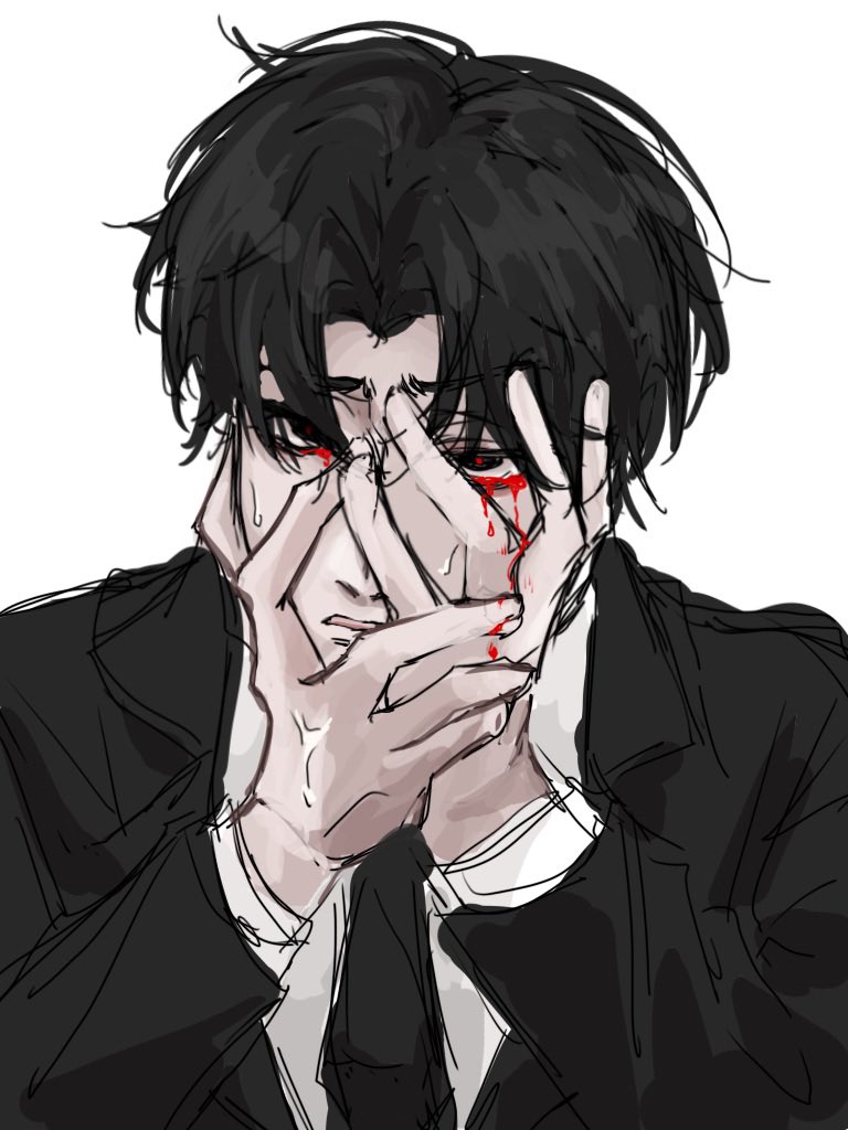 ~كان هناك شيء ساخن يتدفق من عيني. عندما مسحته، لم يكن دموعًا بل دمًا....