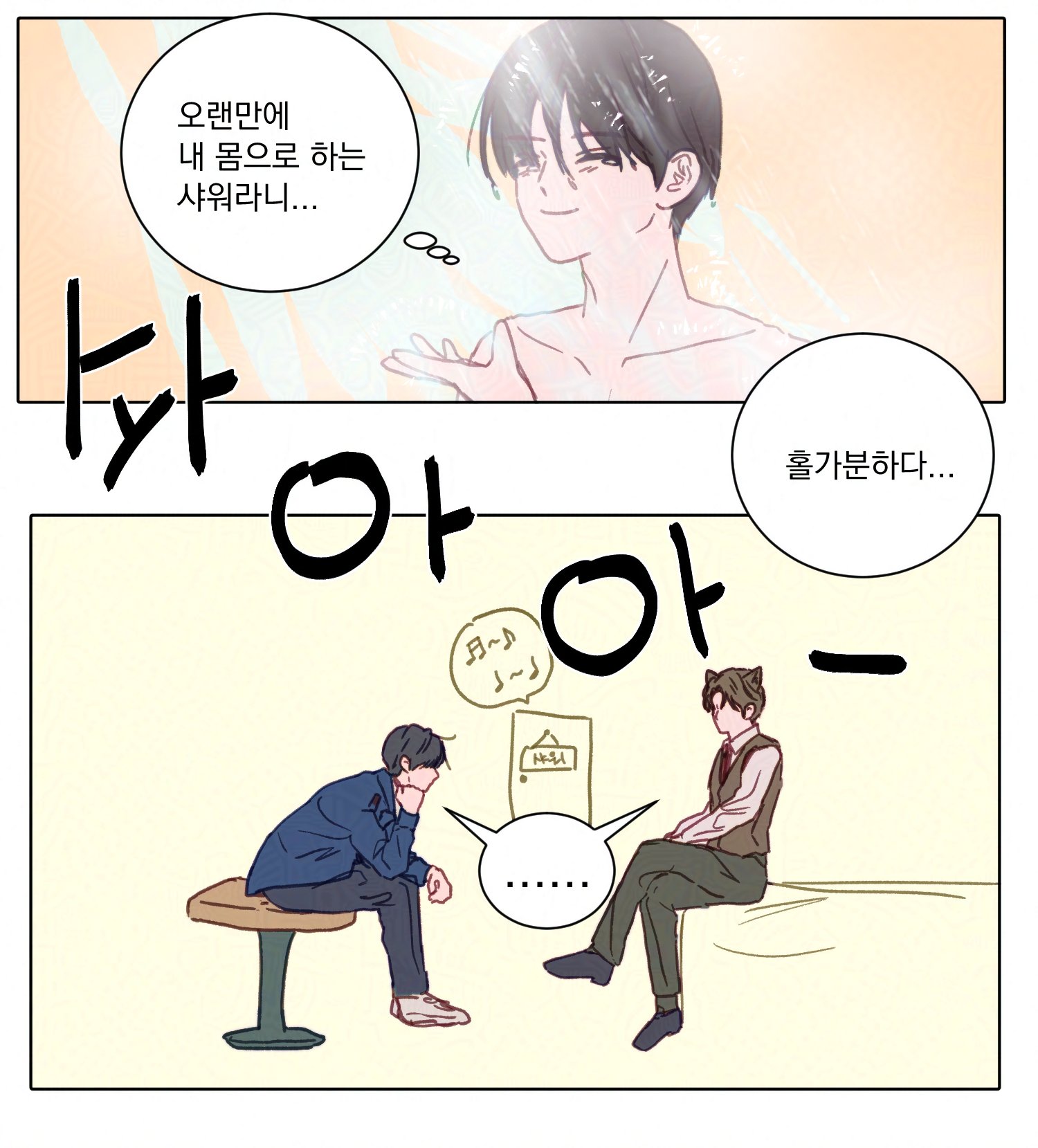 ~كانت هذه هي المرة الأولى التي أستحم فيها بجسدي الأصلي منذ فترة طويلة جدًا. تشوي و هُو يو-وون ينتظرون 😭