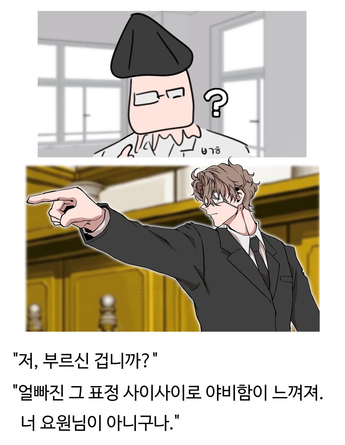 ~موظف القسم الخاص من فريق الأمن.... لطيف على غير المتوقع!؟ تذكرته ظهر مرتين بالفصول السابقة بس ما توقعت يظهر مرة ثالثة، وحتى انه حذر سول-يوم من عدم الذهاب للفرع، الفرع هذا من اكثر الاشياء غموضا بالعمل، لا بجدية بدأت احس ان المقر الرسمي مجرد واجهة وان العمل الحقيقي يصير في الفرع...وفكرت في شي غريب، عن بحث استدعاء ايروم-نيم في معهد أبحاث المرح، ايش صار للتجارب الفاشلة السابقة... التجربة الأخيرة والناجحة تماما هي التجربة #444، يعني التجارب الـ443 السابقة هل ممكن رغم فشلها لا زالت موجودة او بعضها... يعني لو فكرنا كذا نقدر نفكر باتجاه اخر ان ممكن في ثانيين تم استدعائهم اذا كان ايروم-نيم المزعوم هم كتاب الويكي (احس تحمست شوي) المهم نرجع لاحداث الفصل، بايك سا-هيون واضح رح يتغير ولو قليلا ولحد الان متحمسة لردة فعله لما يعرف ان العميل هو سول، سول-يوم رجع للمدينة بسرعة...والتقى بالمحلف رقم1 هُو يو-وون الحقيقي؟!