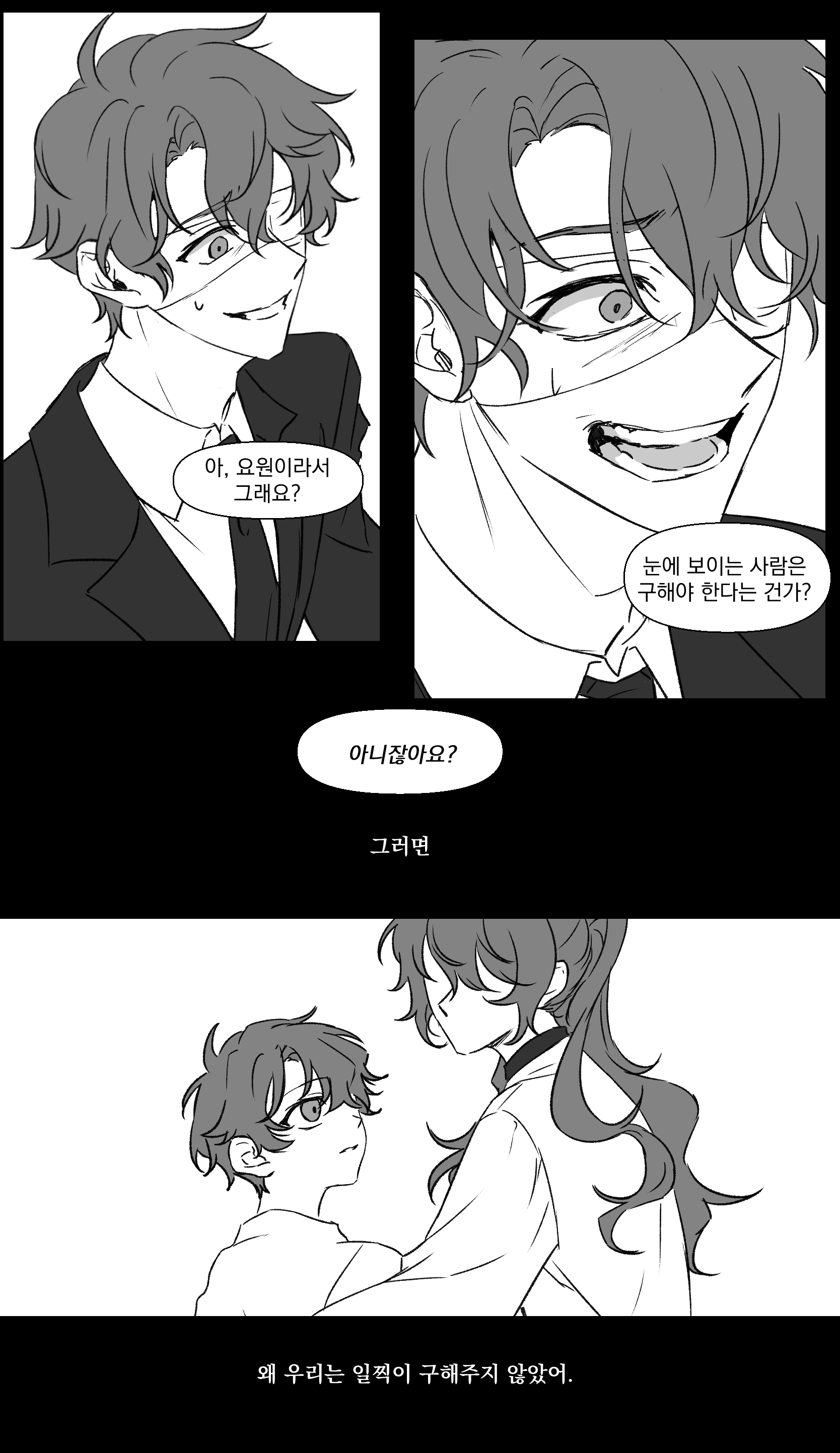~كلام سول بالفصل السابق: "إنه مجرد منطق بسيط. ما دام بإمكاننا النجاة معًا، فلا داعي للقتل. سيبقى ذلك الشخص على قيد الحياة لأنك يا سيد سا-هيون كنت هنا."