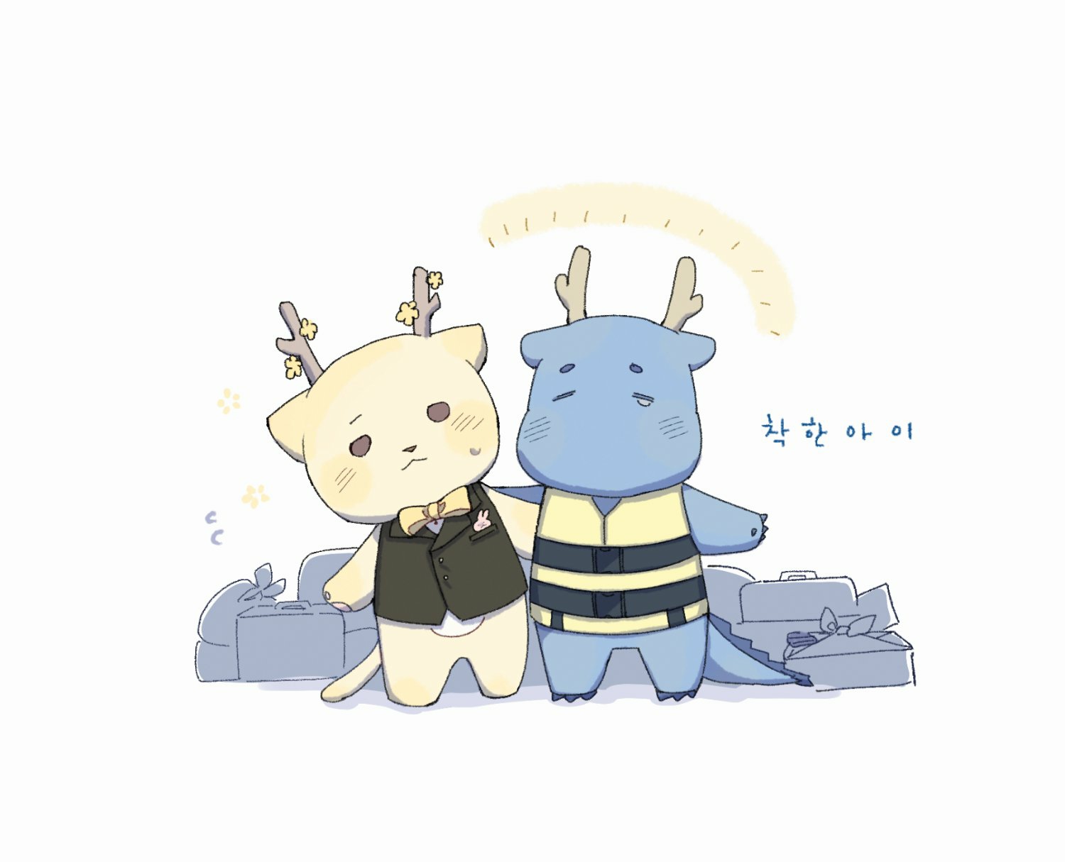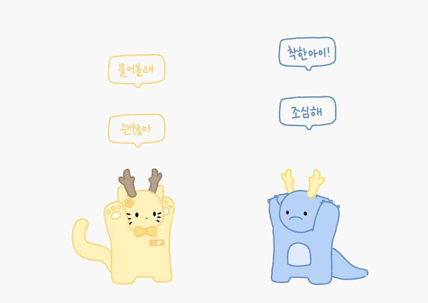 + كلام فلاور جولدن بالأصفر، وكلام التنين الأزرق بالأزرق في النص الكوري.