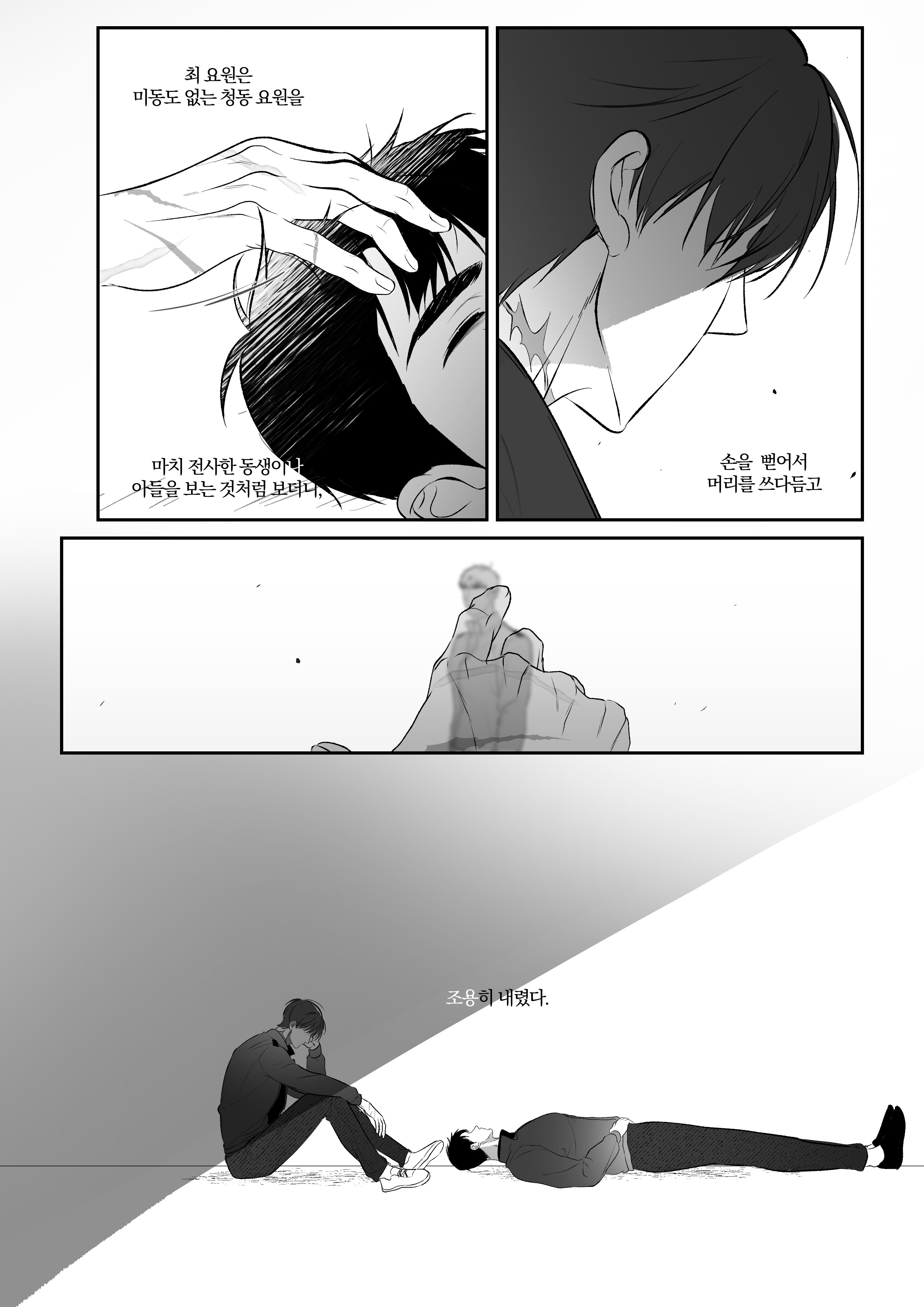 لكن العميل تشوي نظر إلى العميل برونزي الذي لا يتحرك وكأنه يرى أخاه الأصغر أو ابنه الذي مات في المعركة، ثم مد يده وربت على رأسه بهدوء وأنزلها.