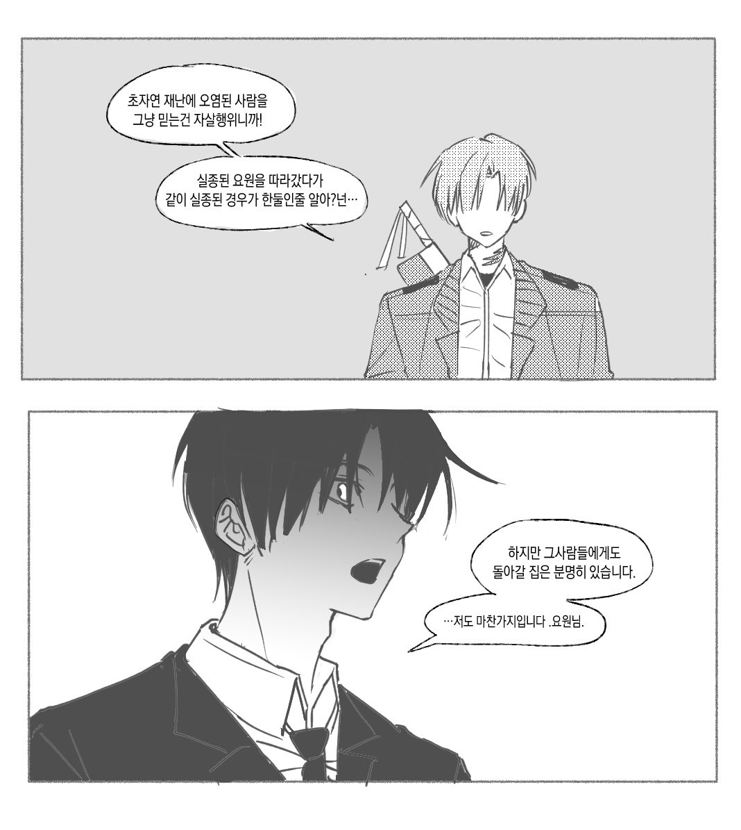 ~نعم. إن مجرد تصديق شخص ملوث بكارثة خارقة للطبيعة هو عمل انتحاري! ويمكن أن يتعرض كلانا للخطر. هل تظن أن حالات فقدان العملاء الذين اتبعوا عميلاً مفقوداً ثم فقدوا معاً قليلة؟
