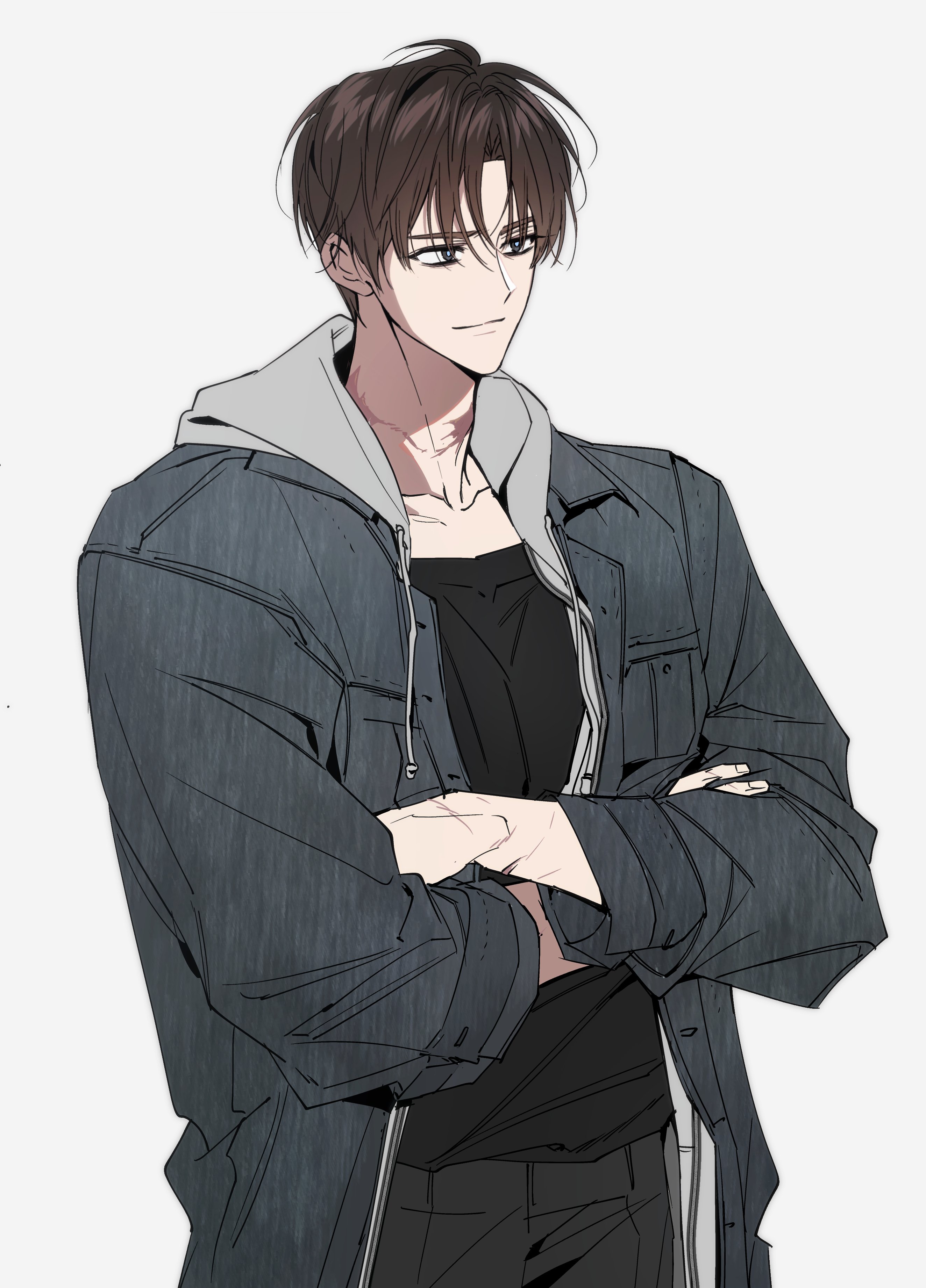 شاب وسيم جدًا، يرتدي بدلة رمادية.