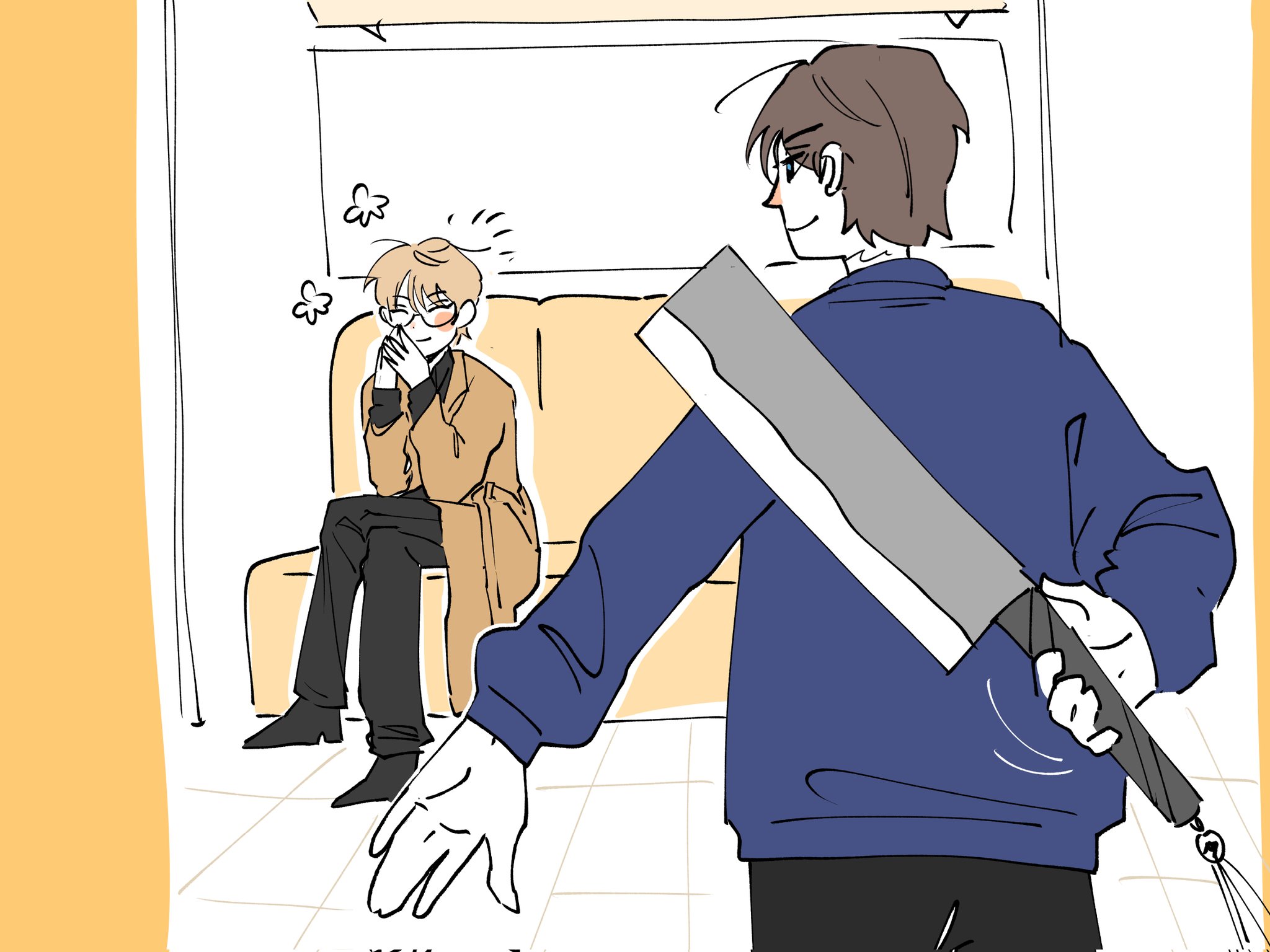 سمع صوتًا هادئًا ودافئًا من العميل الذي كان ظهره فقط مرئيًا.