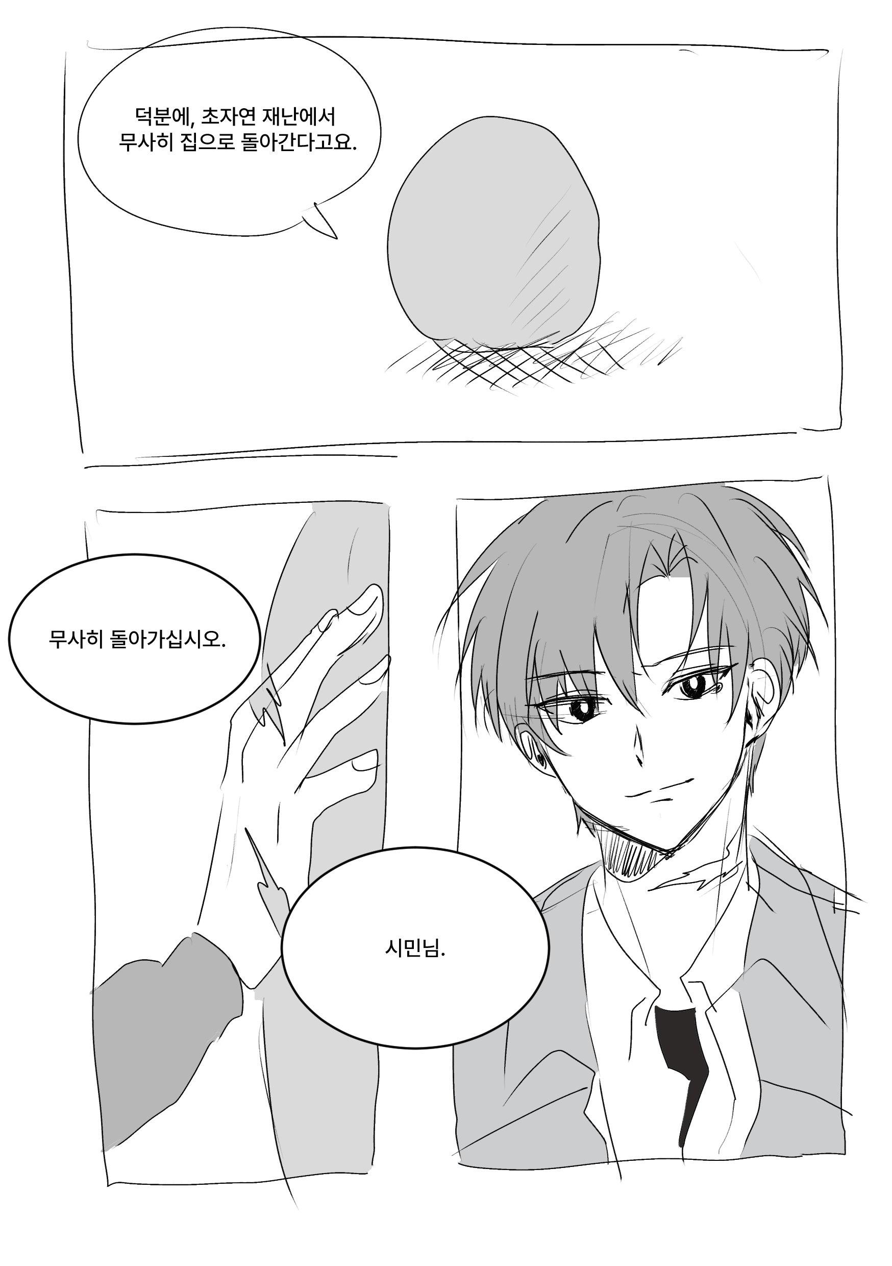~أما عن الفصل، جسد سول عاد بسبب الجرعة فلتحقيق أمنيته يجب أن يعود جسده أولا، سول كلم براون وبعدها العميلة هِجيوم (بدا المكان خارج الغشاء صاخبًا) صراحة خفت 🙂 صاخب بمعنى كلام أو صاخب بمعنى أن شيء ما كان يحدث لهم؟ (رؤسائي في نفس الفريق الذين ساعدوا الموظف الجديد الذي كان يظهر ويختفي فجأة. زملائي. قائد فريق الأمن. العميل 007 الذي التقيته عبر صفقة سلع مستعملة. وأيضاً...العميل الذي، رغم شكوكه المستمرة بي، استجاب لطلبي للإنقاذ. "بفضلكم، سأعود إلى للمنزل سالمًا من كارثة خارقة للطبيعة.") 😔 انها تمطر، (—عُد بسلام، أيها المواطن.) 🥹 أما براون أغربهم [هممم. إن جملة الخاتمة الرائعة هي دائماً معضلة كل فنان! ولكن بما أننا صديقان، فلا داعي للقلق بشأن مثل هذه الأمور التافهة...] متقبل الوداع؟؟ [لكل بث نهاية، وهذا ما يجعله ممتعاً ومنتظراً أكثر. أما مسألة متى ستعود لزيارة الاستوديو مرة أخرى لتروي لنا قصصاً ممتعة، فهذا يعتمد على رغبة الضيف نفسه.] رغبة الضيف ✨ كلما نعرف أن عودته للمنزل ليست النهاية ولن تكون عادية أصلا، و....الكاتب سيقرر كيف ستكون الأحداث القادمة. [هل استمتعت؟] براون أعاد الكلمات التي قالها سول لبراون في الفصلين 126-127 😭 ) القصص التي لا تزال مستمرة. ماذا سيحلُّ بمدينة سيغوانغ الخاصة الآن؟ هل سيتمكن العملاء من حل مشكلات هيئة إدارة الكوارث؟ ماذا سيحدث لفريق الأمن في هذه الأثناء؟ هل السيد جاي بخير؟ رئيس القسم مين-سونغ سيحتاج بالتأكيد إلى طريقة للتعافي من التلوث. أشعر وكأنه كان بإمكاني المساعدة بطريقة ما... وماذا حدث للعميل تشوغاي؟ هل تمكن طلاب مدرسة سيغوانغ الثانوية، والمعلمون، والعملاء من الهروب بأمان؟ ...هل لا يزال هُو يو-وون يقدم الاستشارات؟ وهل ما زلت أنا موجودًا هناك؟) نفس سؤال سول-يوم هل سول الشرنقة ما زال في غرفة الاستشارات؟ هذا حرفيا ايرور لأن كيف😵 اثنين سول؟ واذا تعالج اللي بالشرنقة شو بيصير، واللي عاد للمنزل هو اي نسخة... ومين الاصل 🗿 كنت طول الوقت اتكلم فصحى بس فجأة المهم، (أريد معرفة القصة التالية. ينتابني الفضول. أشتاق إليهم.) ☹️ بكاء، كملاحظة سول هنا قال 'أريد أن أراهم' بس المصطلح الكوري يعني الاشتياق (من مصادر موثوقة 🤫) و....عاد فعلا إلى عالمه (وفي الأعلى، رأيتُ ميدالية دمية أرنب 'الصديق الجيد' التي حصلتُ عليها كجائزة، وهي لا تزال مغلفة.) عرفنا أنه عاد لنفس اليوم الذي انتقل فيه للعالم الآخر، ([أخي الصغير: يا كيم سول-يوم، أمي تقول لك أن تأتي إلى المنزل في عطلة نهاية الأسبوع] أبي، أمي، أخي، أصدقائي. الأشخاص الذين اشتقتُ إليهم كانوا جميعاً هناك. السجلات التي تخبرني من أنا. آثار حياة كيم سول-يوم، أشياء مألوفة وتبعث على الحنين. لكن آثار الأشخاص الذين كنتُ أتواصل معهم بشكل اعتيادي في السنوات الأخيرة لم تكن موجودة، لقد عدتُ إلى عالمي.) لا أنا لا أبكي 😞😞 أنا فقط أغرق في دموعي، وحتى النهاية (دون أن أنظر للخلف.) و لم ينظر كيم سول-يوم للخلف أبدًا.