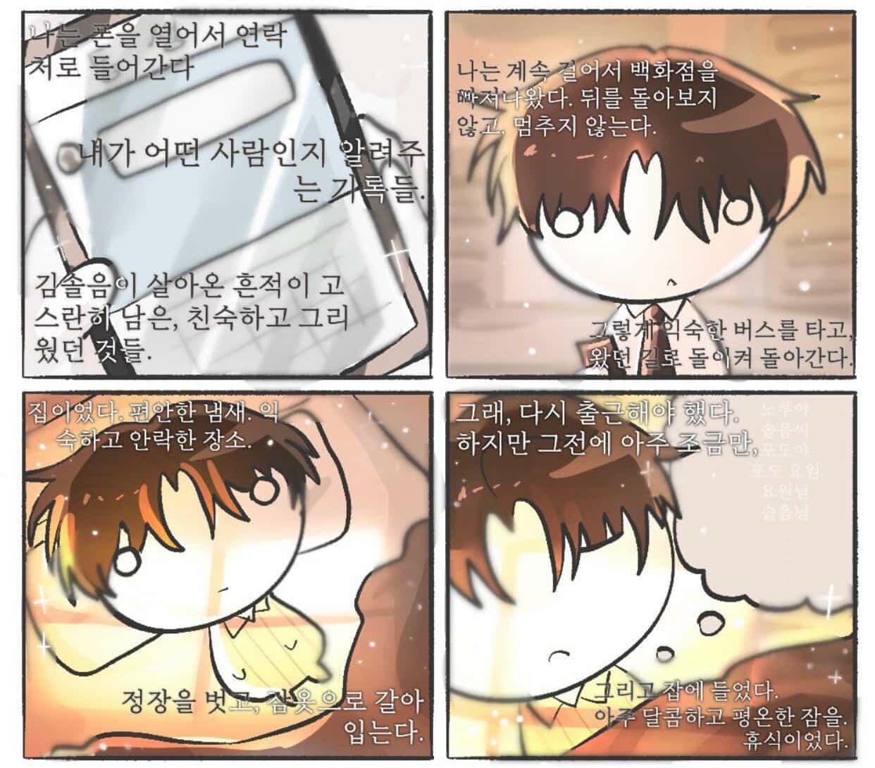 (هذه كانت استراحة.) نعم كيم سول-يوم سيستريح أخيرا، كلنا نعرف أن أمور كثيرة ستحدث لاحقا ولا نستطيع توقع أغلبها، لكن على الأقل في هذه اللحظة سيرتاح، والكاتب سيرتاح أيضا، أما أنا 🥲 جبت العيد في درجات اختباراتي 😞