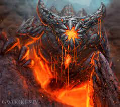 حسن وحش الذي أريد هجوم عليه هو عبارة عن وحش عملاق من حمم يحمل صابر في يده حيث أصل الى قدمه حيث يجب أن أبتعد لرأيت وجهه لكنه لا يملك واحدا