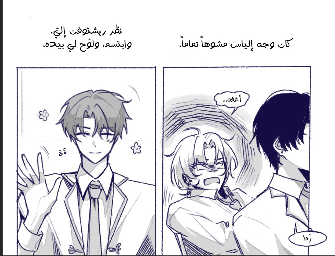 ومن عبوسه تجاه إلياس، فهمتُ أنه يقصد: "أنهِ الحديث وارحل." ضحك إلياس.