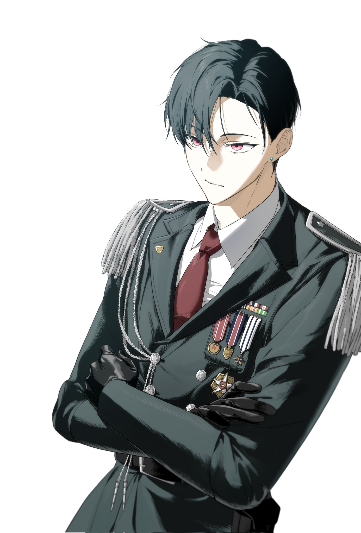 معاطف طويلة سوداء بالكامل، ربطات عنق حمراء.