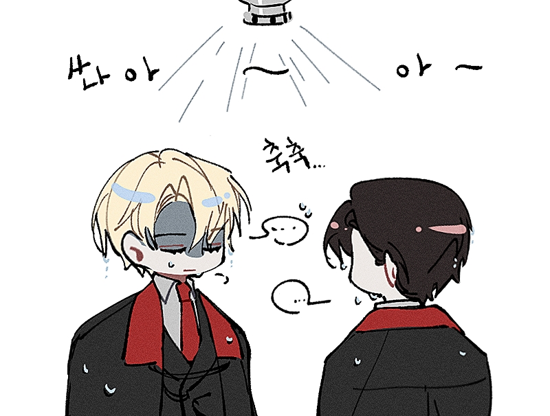 مع صوت شيء ينفتح، انسكب الماء البارد من الأعلى، ورش في كل مكان.