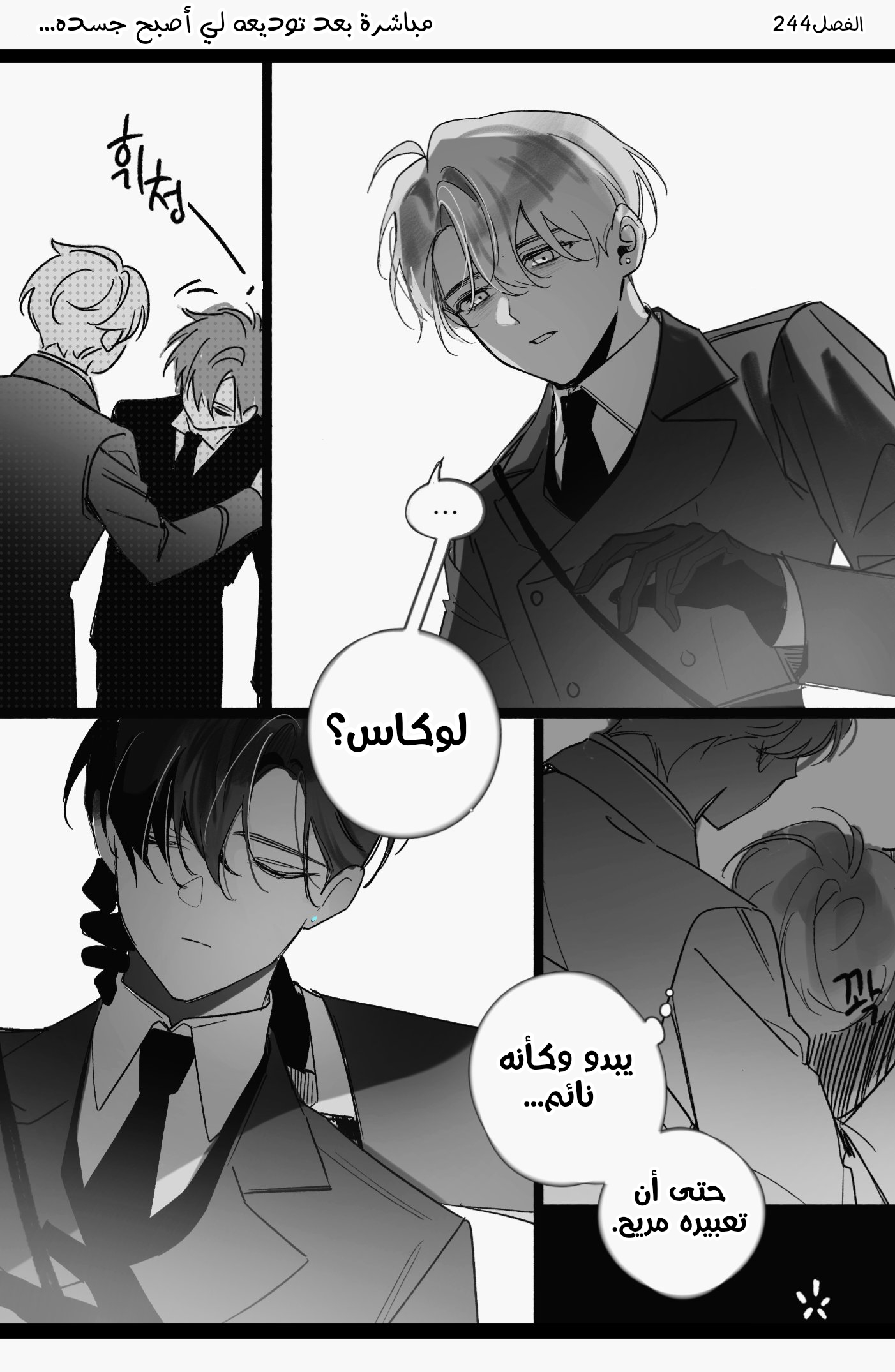وبينما كان النائب يشير إليّ بوجه يبدو وكأنه سيُغمى عليه دون أن ينطق، سحب ليو النائب نحوه وضرب مؤخرة عنقه بحركة معتادة، فأغمي عليه.