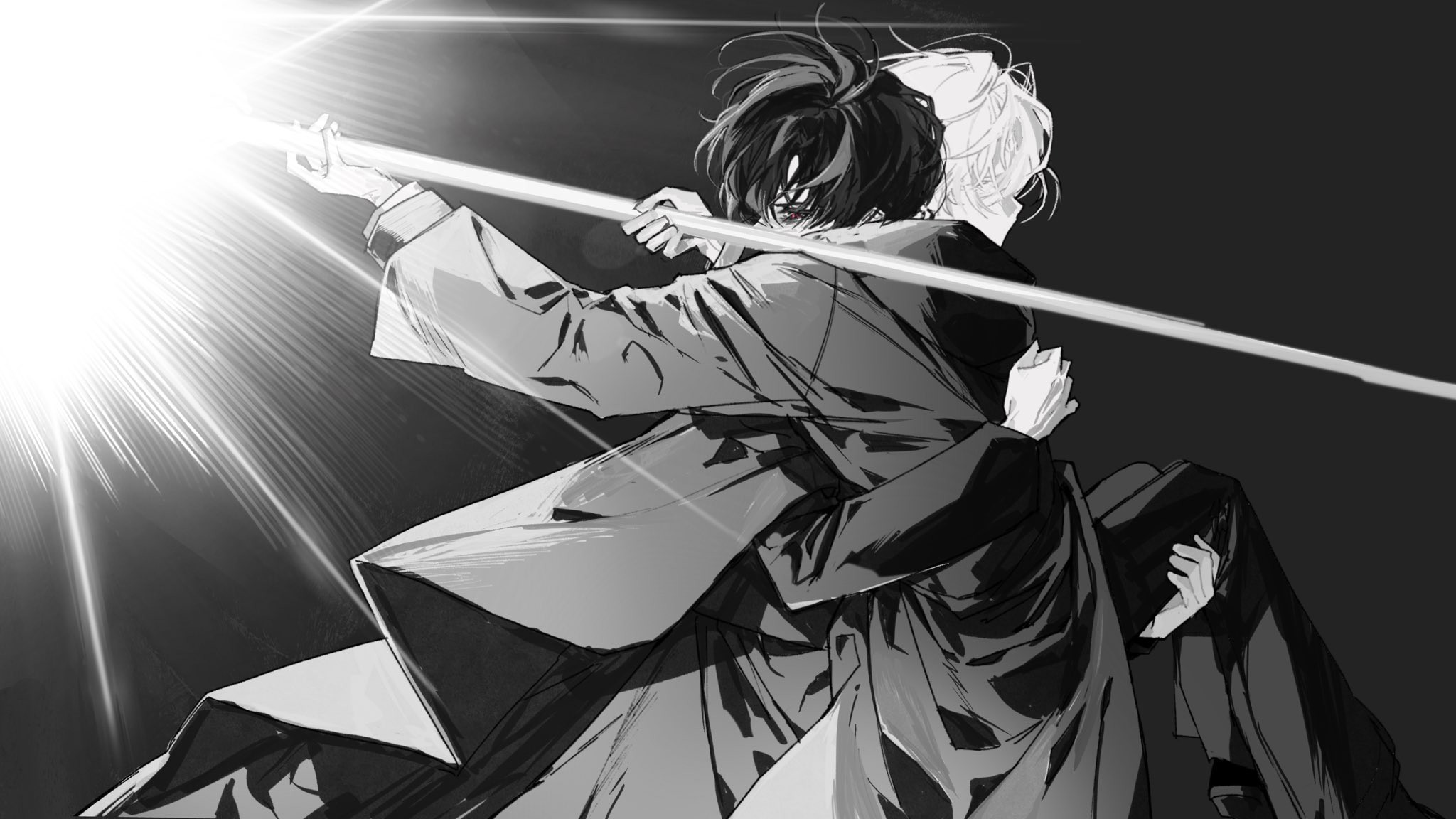 ضوء السحر المنعكس في حدقتيه الزرقاوين كان يومض بجنون، لكن القوة المنبعثة من عينيه لم تهتز قيد أنملة.