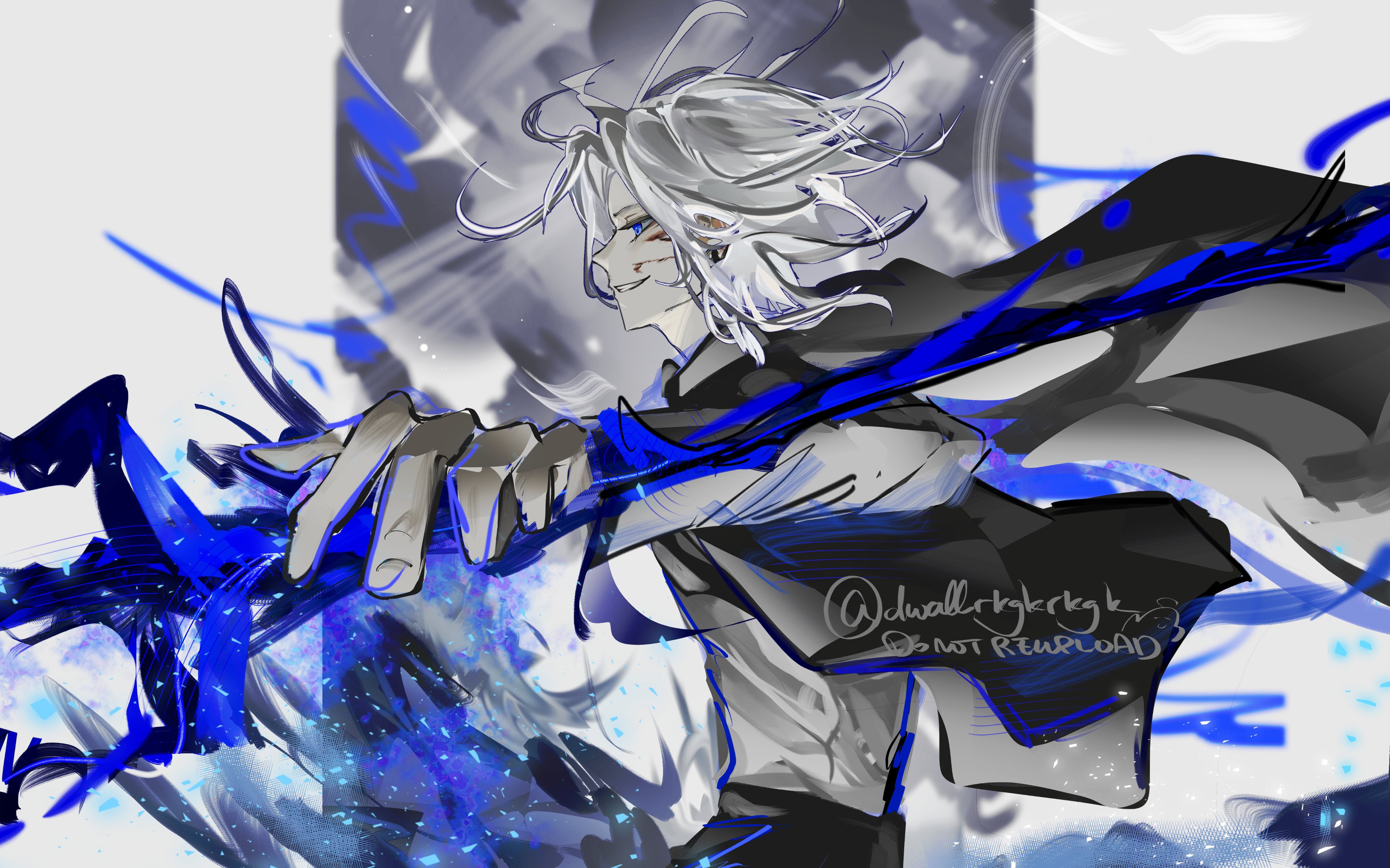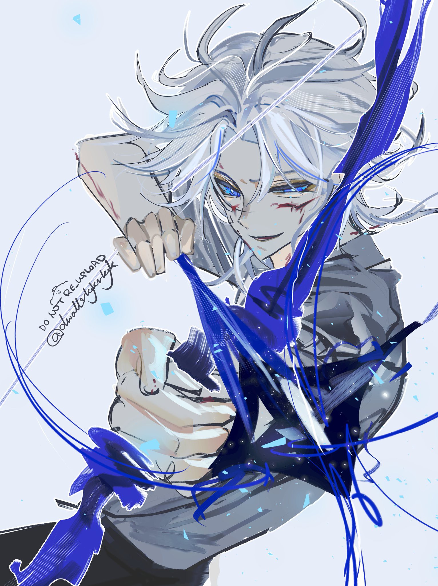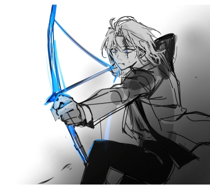 انبثقت كتلة من السحر الأزرق من يده وبدأت تأخذ شكل قوس كبير. ظهر سهم برأس مسنون بحدة.