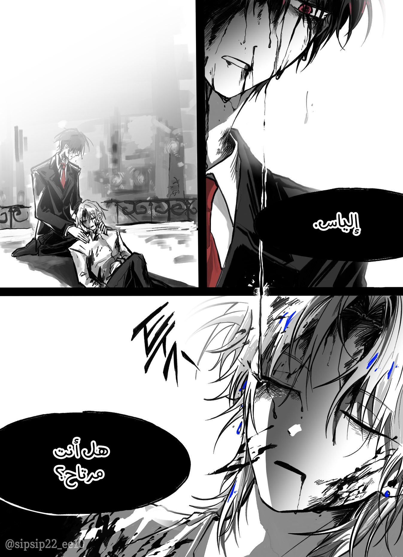تمكنت من النهوض ووضعت رأس إلياس على ركبتي.