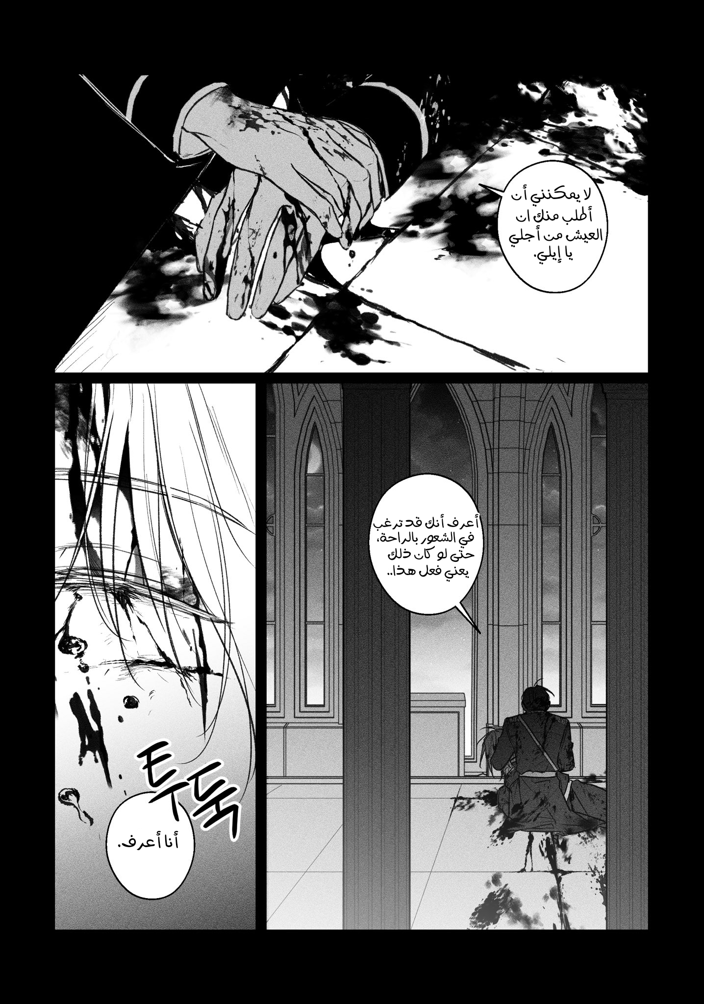 حتى بعد انقشاع السواد، لم أستطع الرؤية بوضوح بسبب القوة الإلهية التي كانت تتناثر وتتدفق عبر جسدي، لكني شعرت بإلياس يلتفت نحوي.