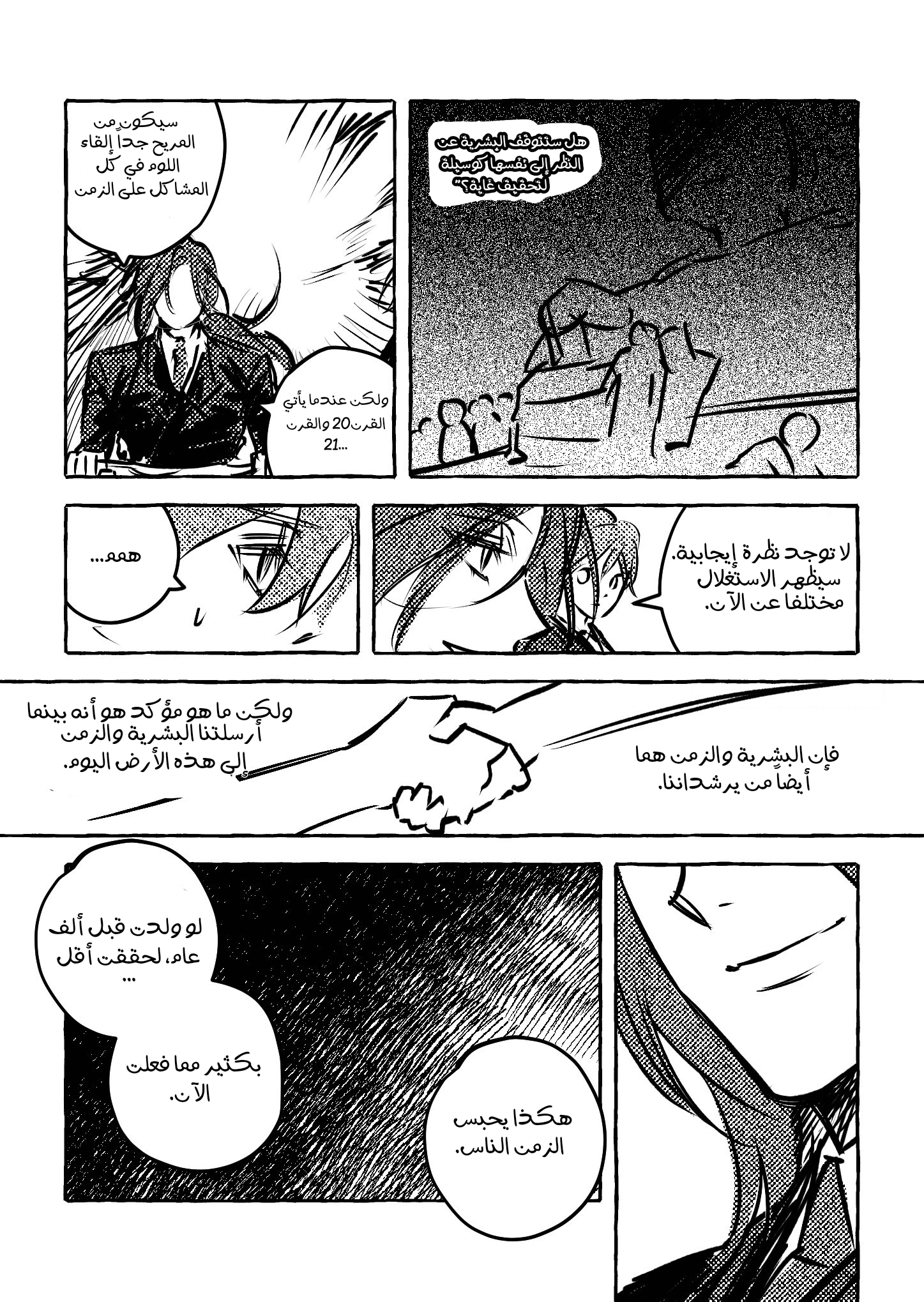 "سألتك سابقاً، أليس كذلك؟ سواء كانت مشكلة إنسانية أم مشكلة زمن. بما أن كليهما يمثلان مشكلة على الأرجح، فلن أتمكن أبداً من اختيار أحدهما فقط. ولكن هناك شيء واحد مؤكد: سيكون من المريح جداً إلقاء اللوم في كل المشاكل على الزمن. ولكن عندما يأتي القرن العشرون، وعندما يأتي القرن الحادي والعشرون، وعندما يمر ألف عام، هل ستتوقف البشرية عن النظر إلى نفسها كوسيلة لتحقيق غاية؟"
