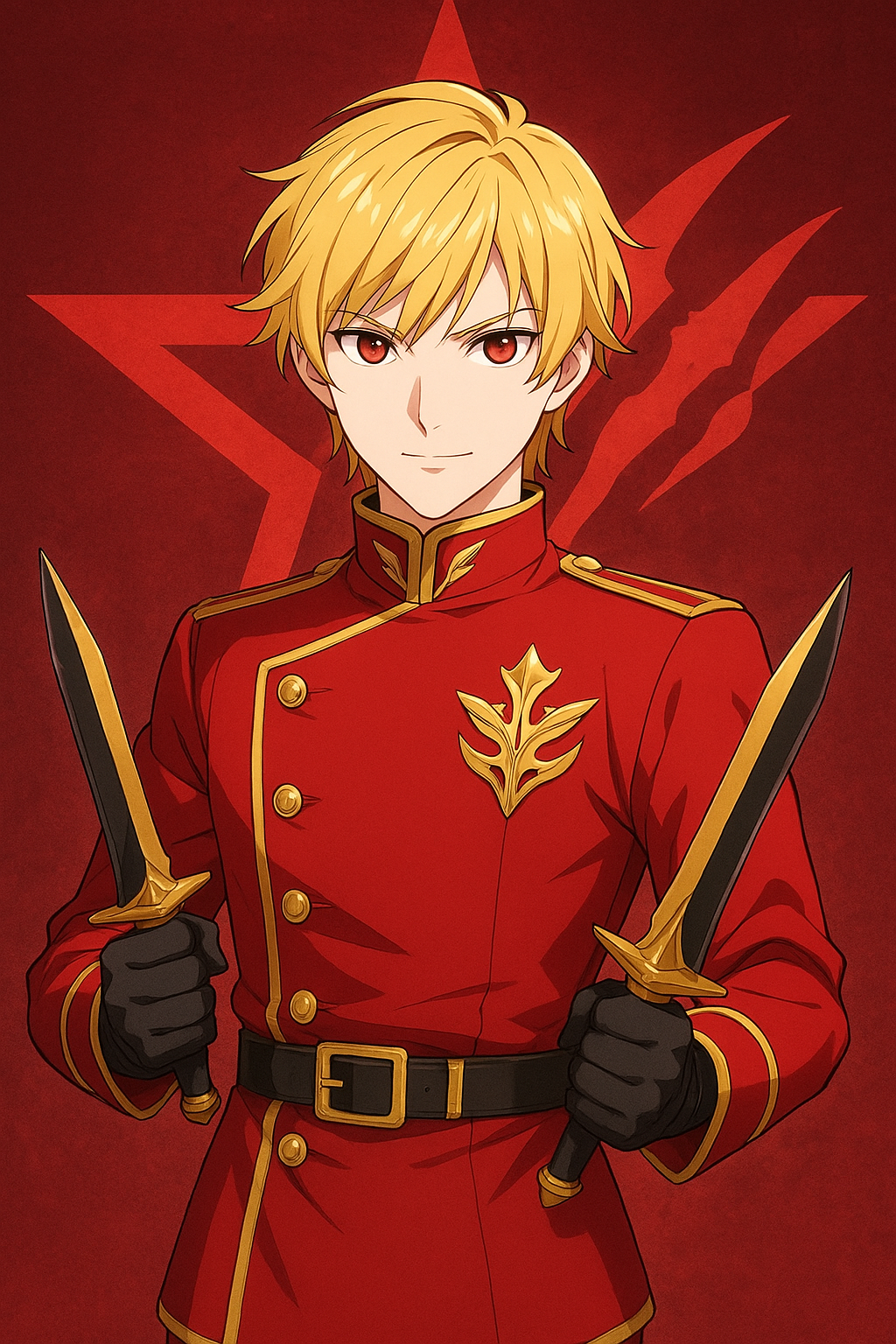 في نفس الوقت، عينيه الورديتان تحولتا إلى اللون الأحمر القرمزي.
