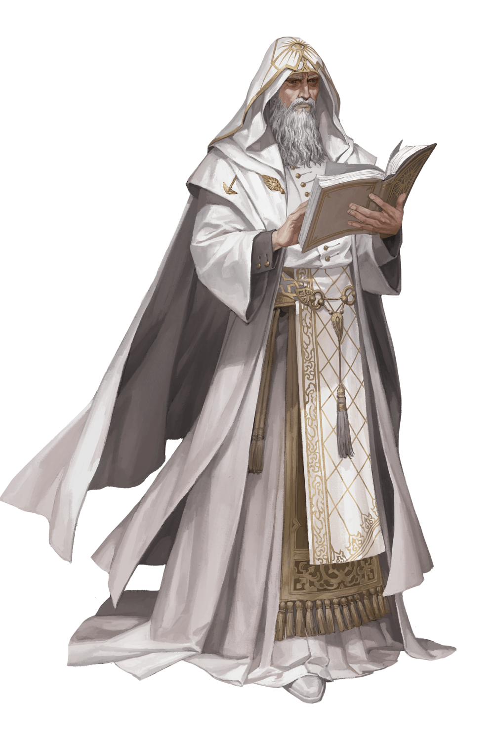 ارتدى أحدهم رداءً أبيض قديمًا كاد يتحول إلى اللون الرمادي. كان وجهه مليئًا بالندوب، وعبر رقبته وجبهته وظهر يديه كان هناك عيون عميقة. بجانبه كان هناك شخص ذو كفوف ضخمة وأصابع غليظة تبدو وكأنها مصنوعة من الخشب. تطاير حول جسمه طبقة من القيح الأصفر والأخضر بينما انبعث منه ضباب من نفس اللون، لقد بدا وكأنه قادر على تآكل التابوت الحجري.